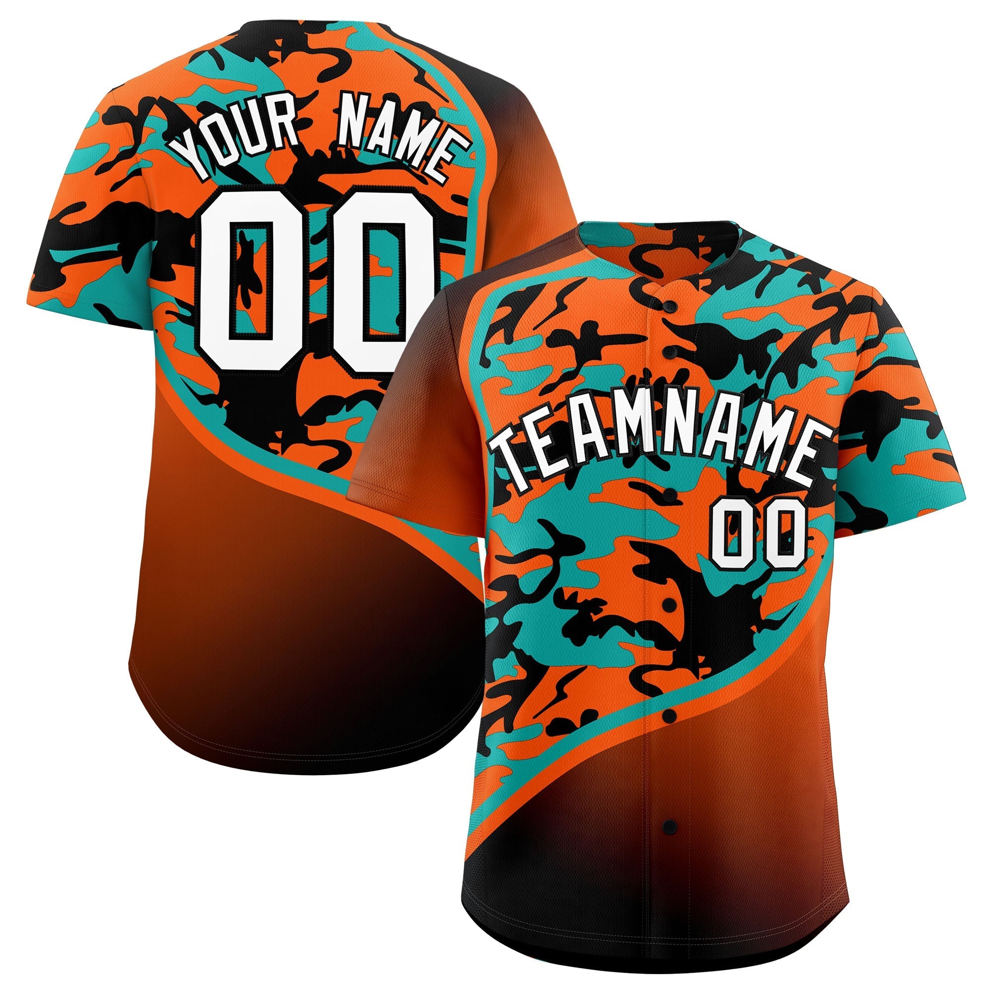 Custom Orange Aqua Black Camo Gradient Fashion Baseball Jersey