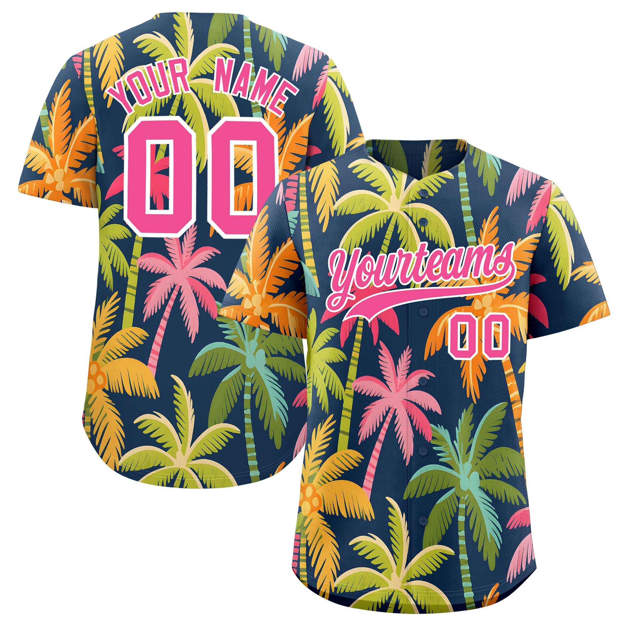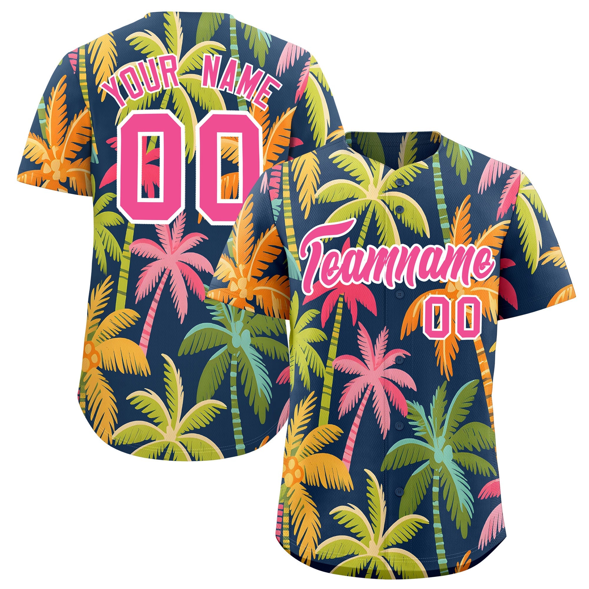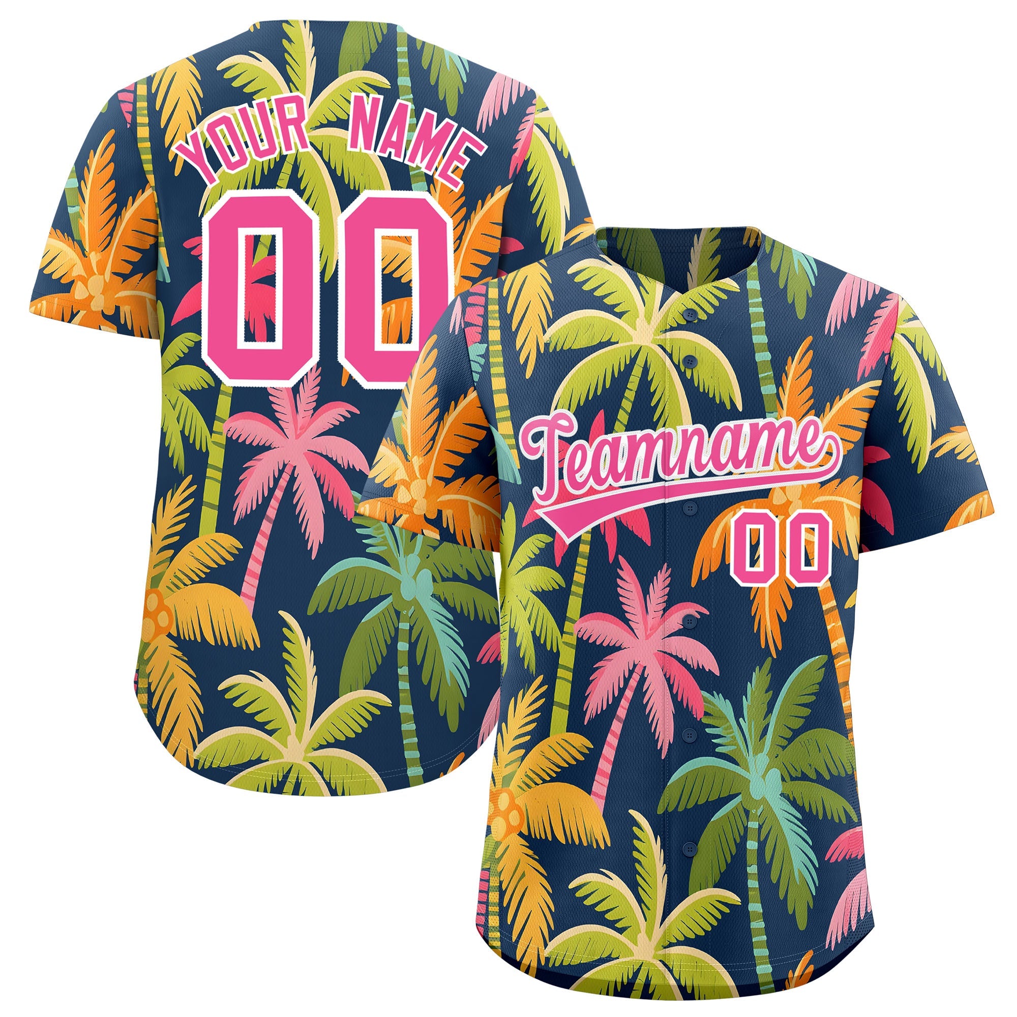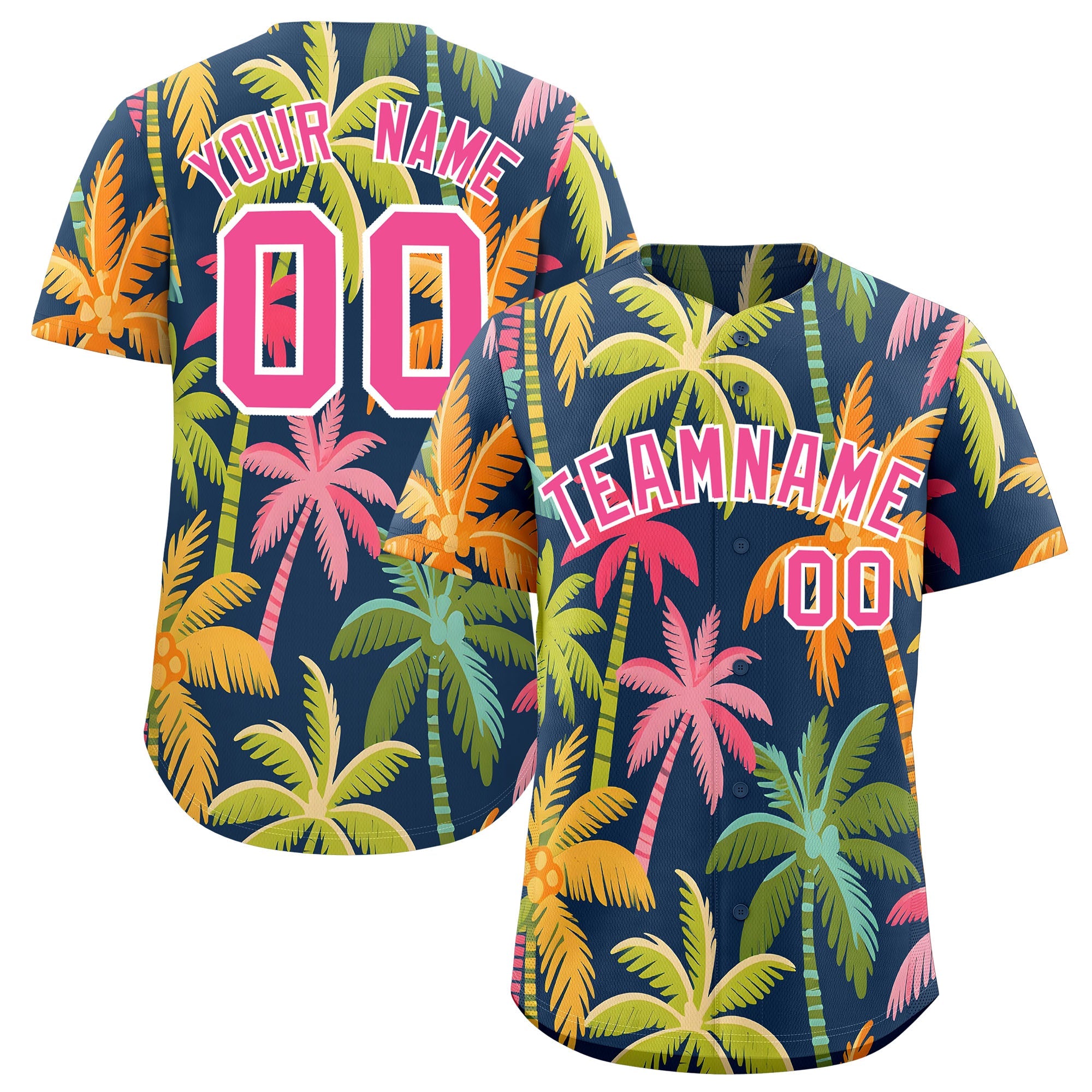 Custom Pink White Palm Tree Pattern Graffiti Hawaiian Style Baseball Jersey