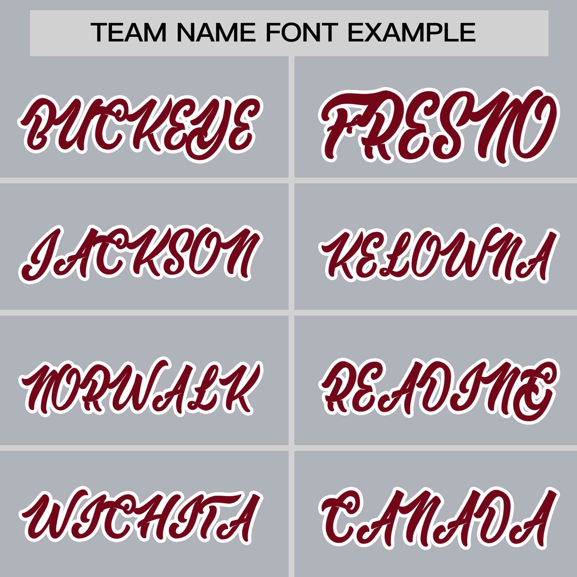 2. Printed team or player name and numbers