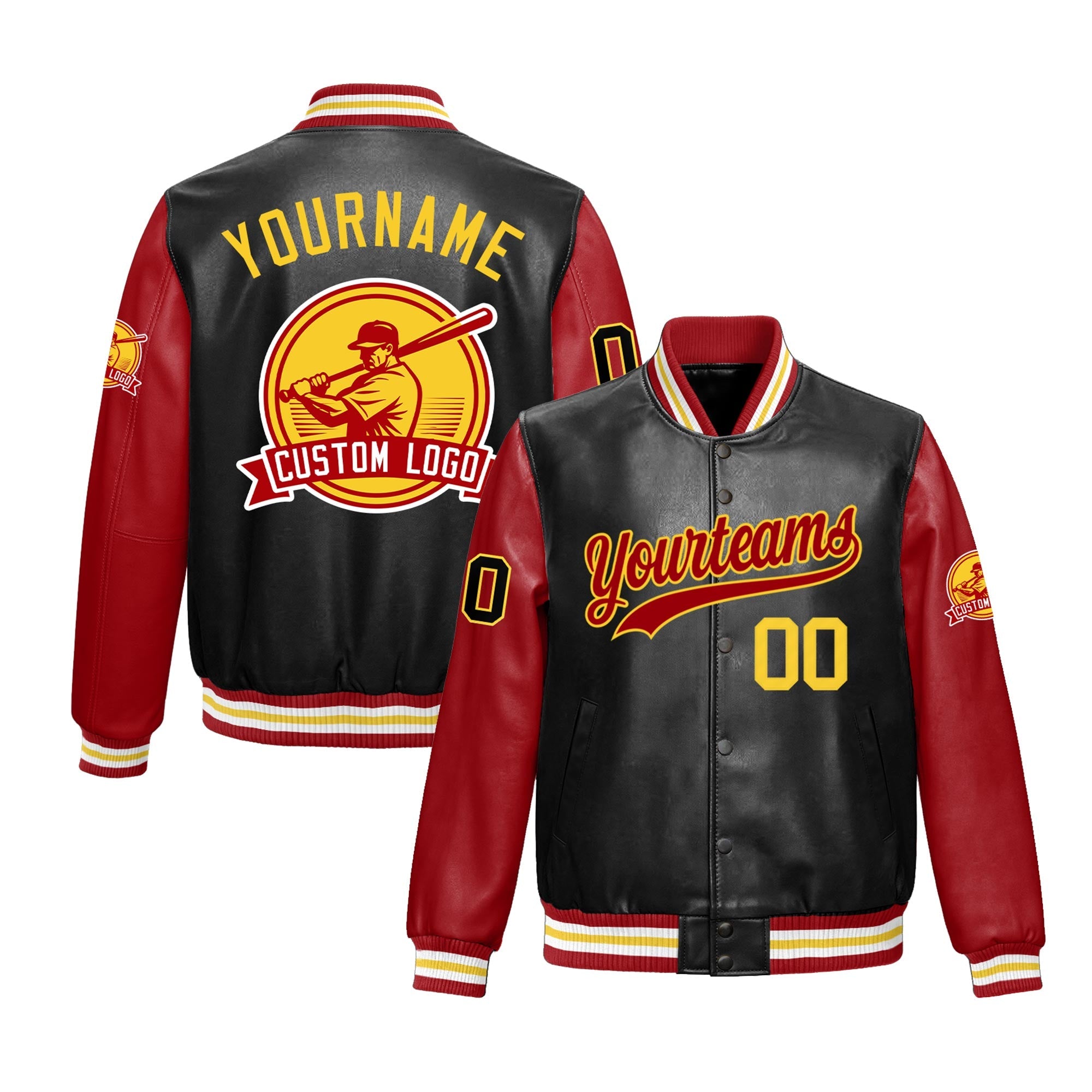 Premium faux leather sleeves varsity jacket with an athletic cut and exquisite stitching. Wrinkle-resistant, durable, and featuring a classic front pocket for a sharp, lasting look.
