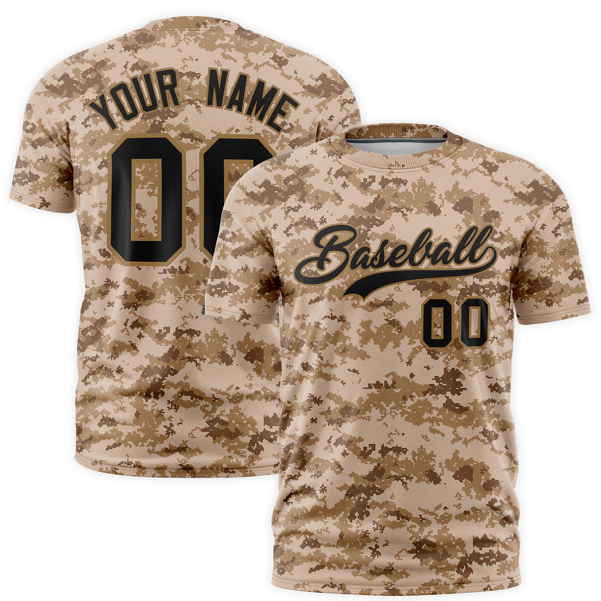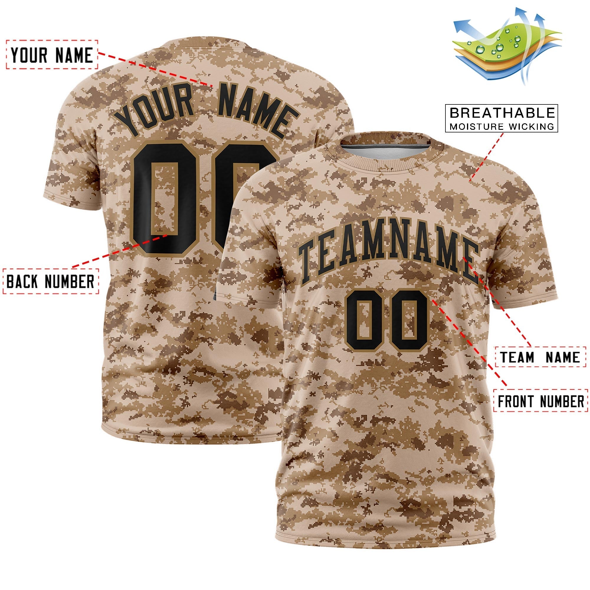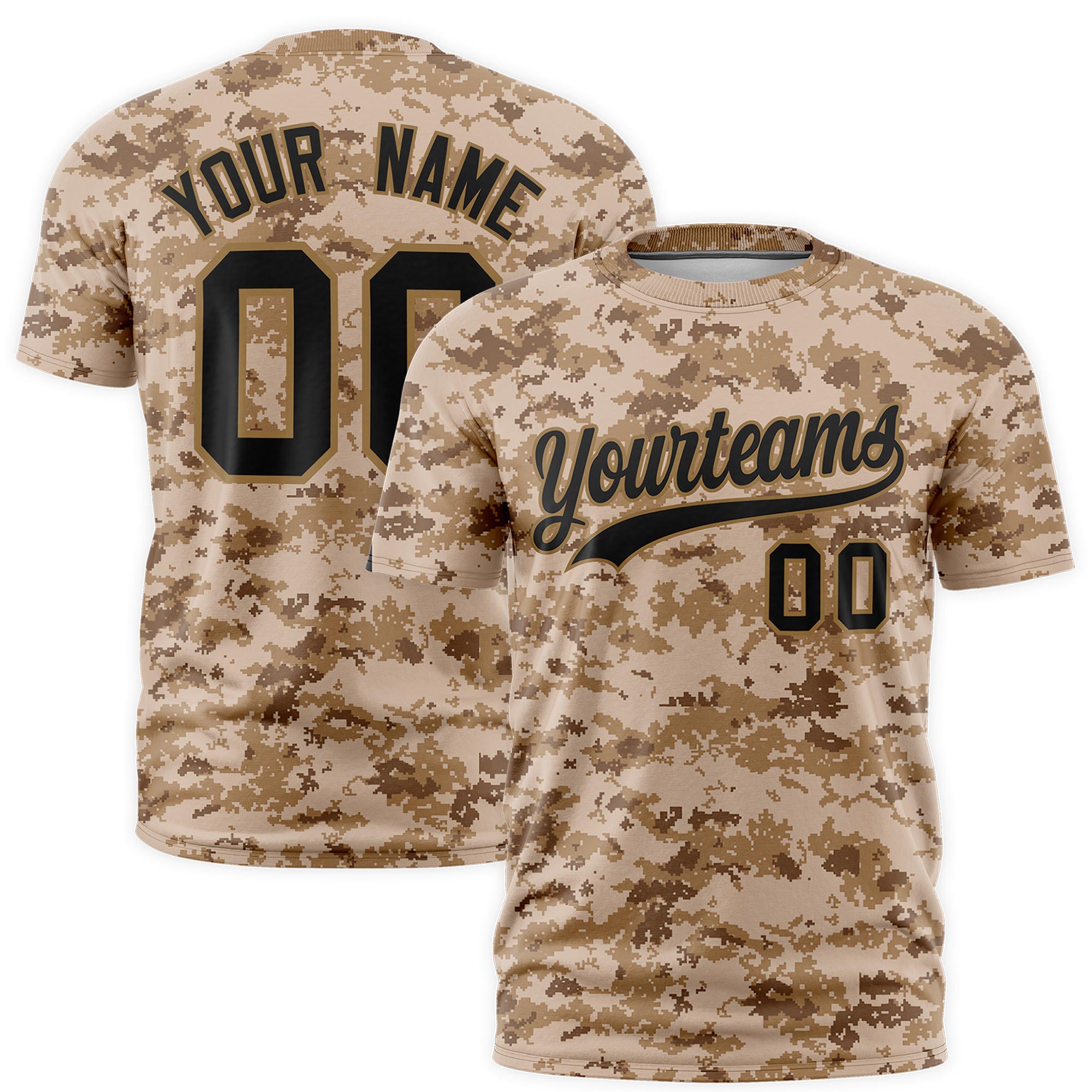 Custom Camo Camel Black Breathable Crew Neck T-shirts