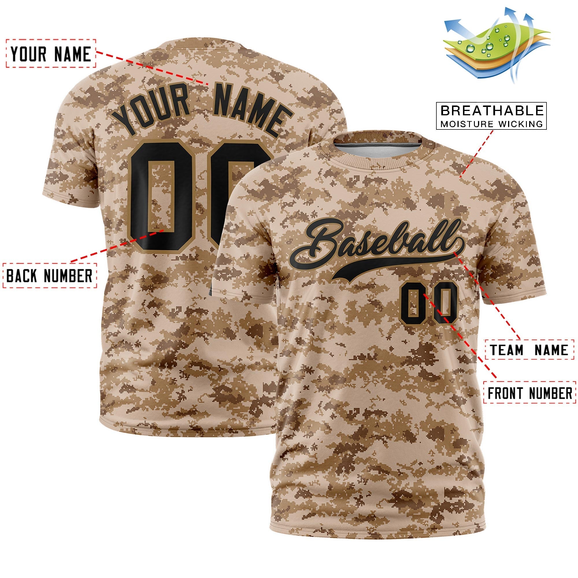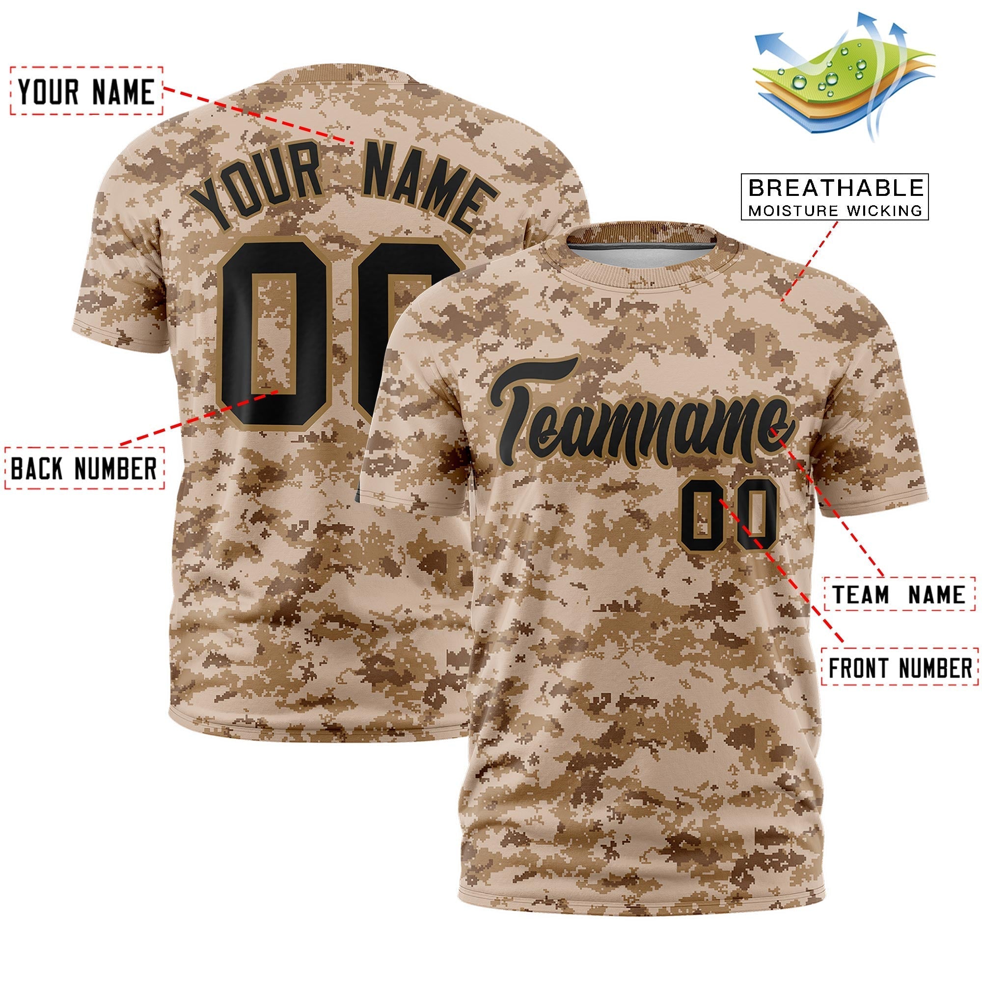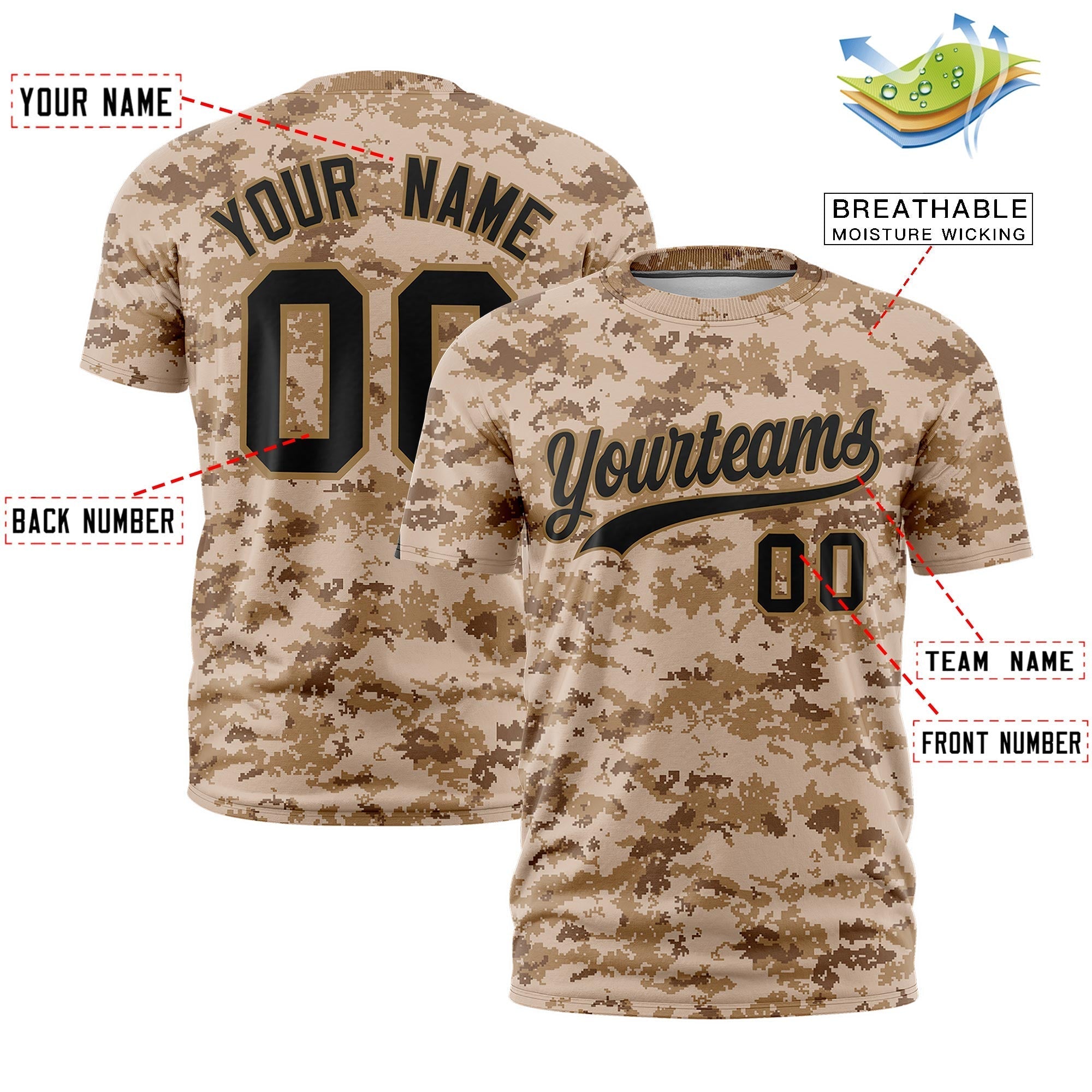 Custom Camo Camel Black Breathable Crew Neck T-shirts