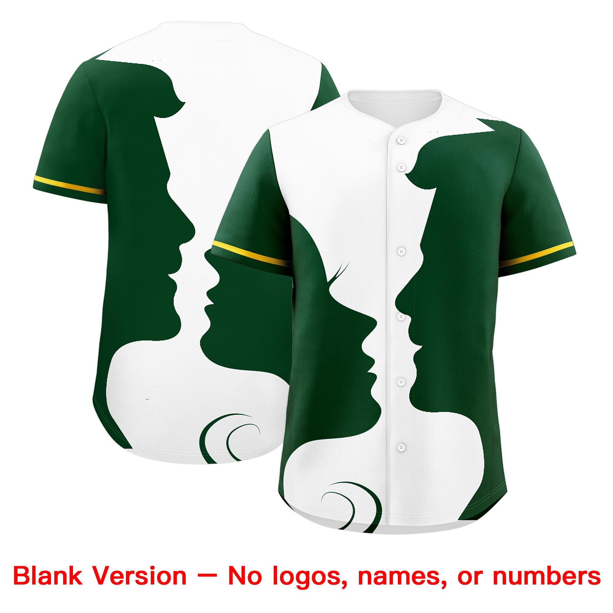 Custom Gold Green White Silhouettes of Loving Couple Valentine's Day Baseball Jersey