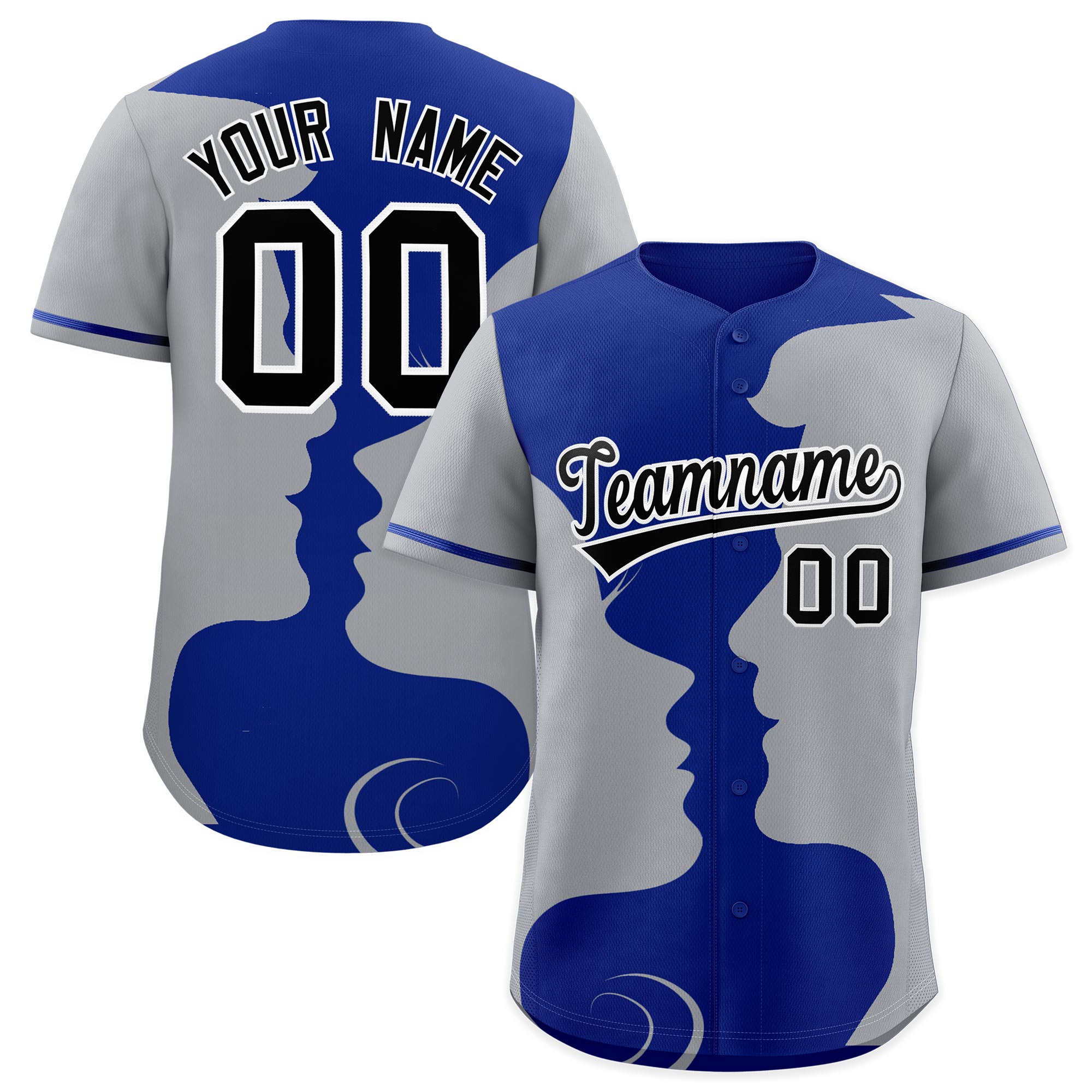 Custom Royal Gray Silhouettes of Loving Couple Valentine's Day Baseball Jersey