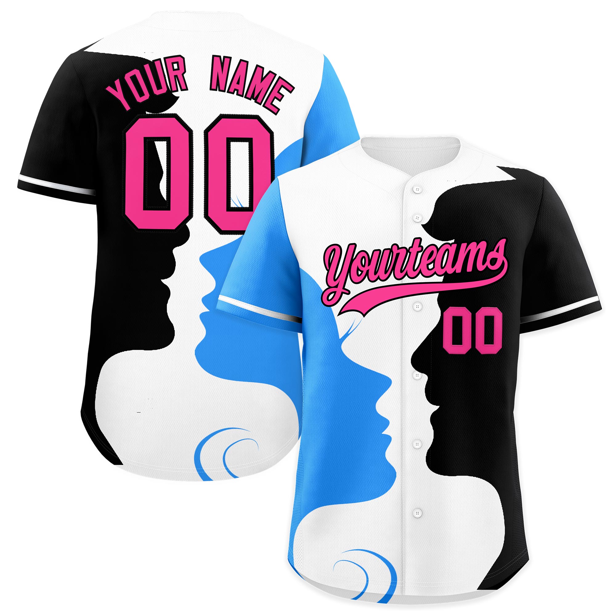 Custom White Powder Blue Navy Silhouettes of Loving Couple Valentine's Day Baseball Jersey