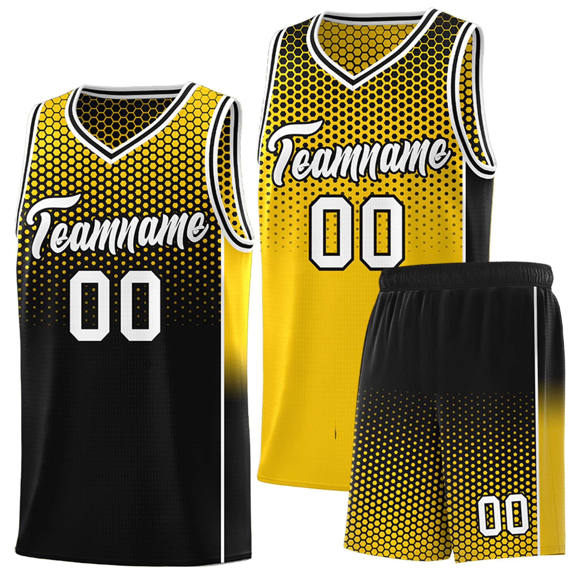 Custom Gold Black Reversible Side Gradient Sports Uniform Dot Pattern Basketball Jersey Kits