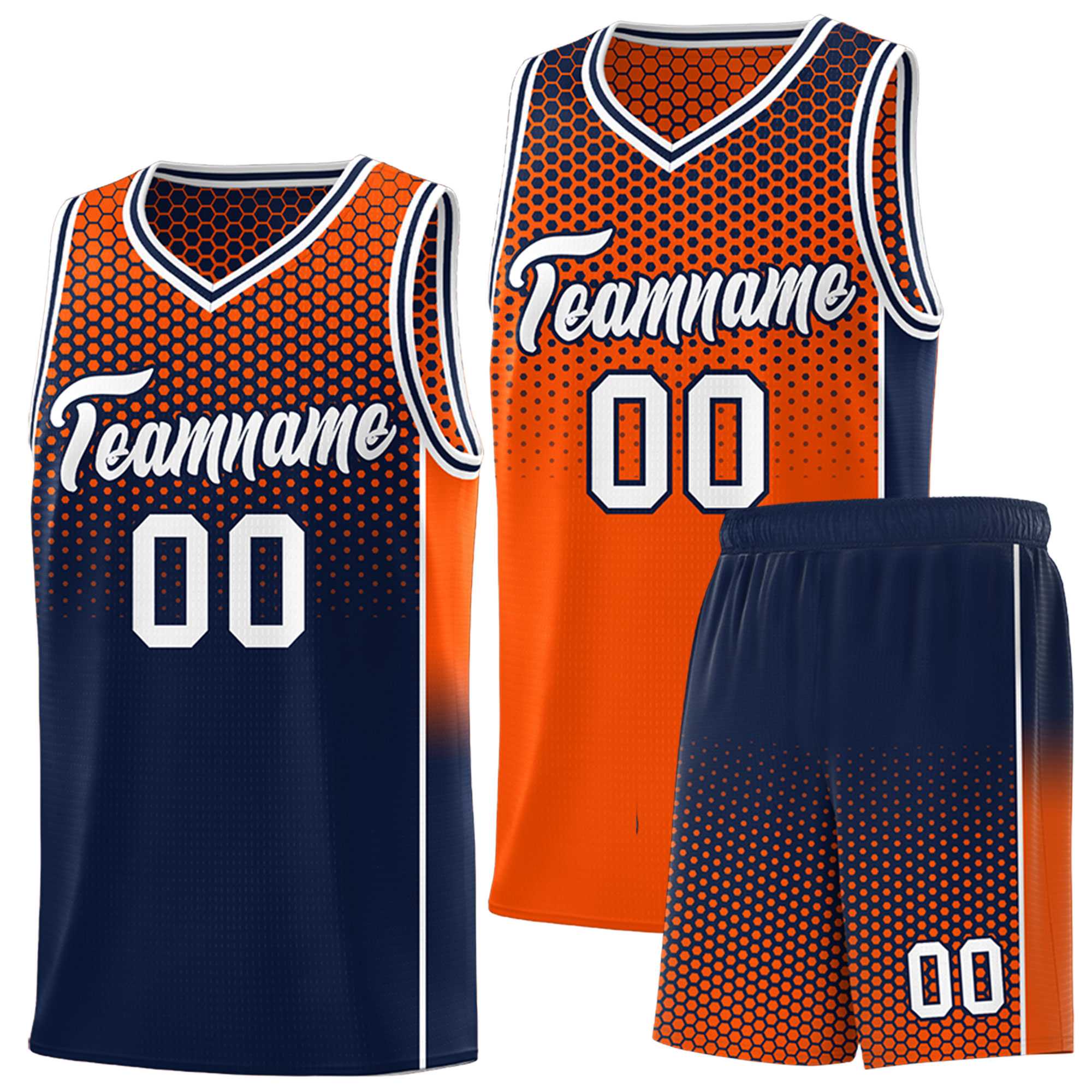Custom Orange Navy Reversible Side Gradient Sports Uniform Dot Pattern Basketball Jersey Kits