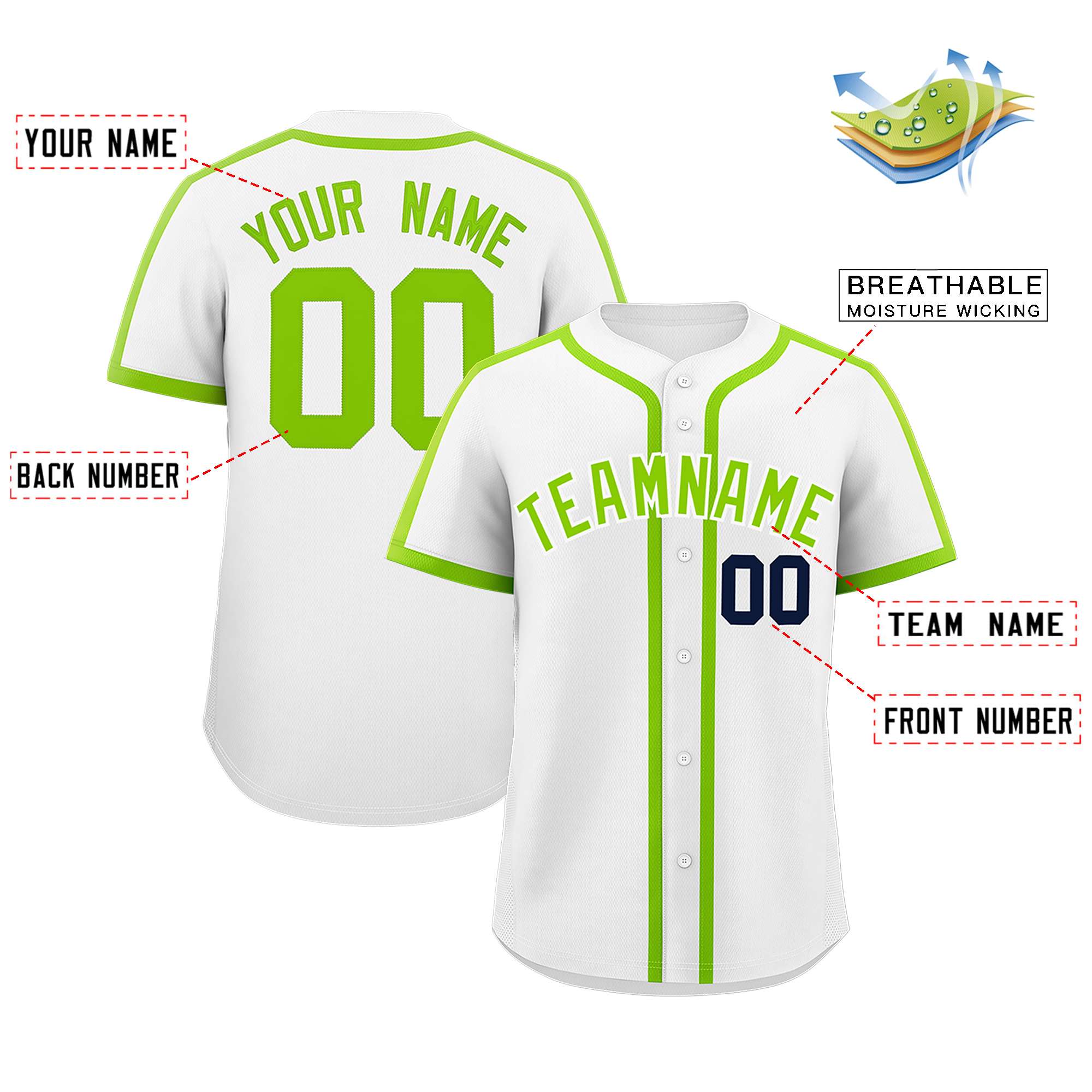 Custom White Neon Green Personalized Classic Authentic Baseball Jersey