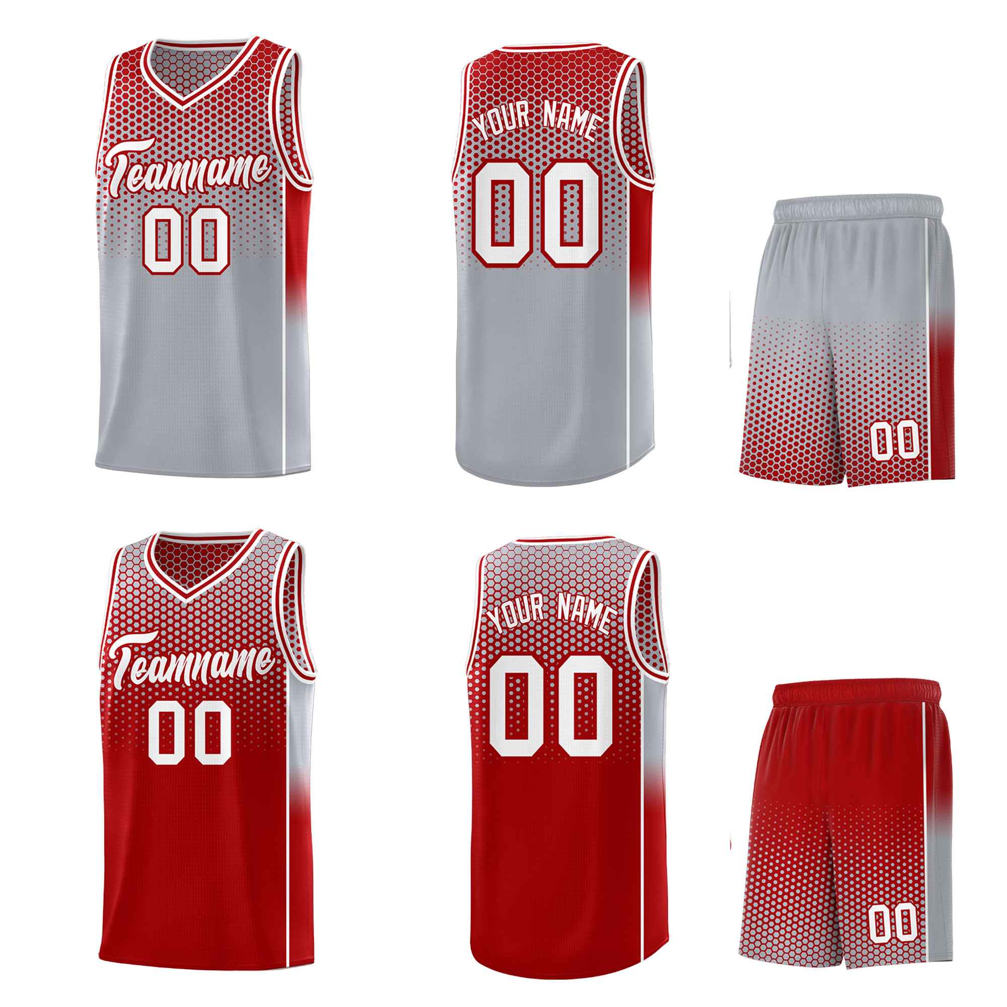 Custom Gray Red Reversible Side Gradient Sports Uniform Dot Pattern Basketball Jersey Kits