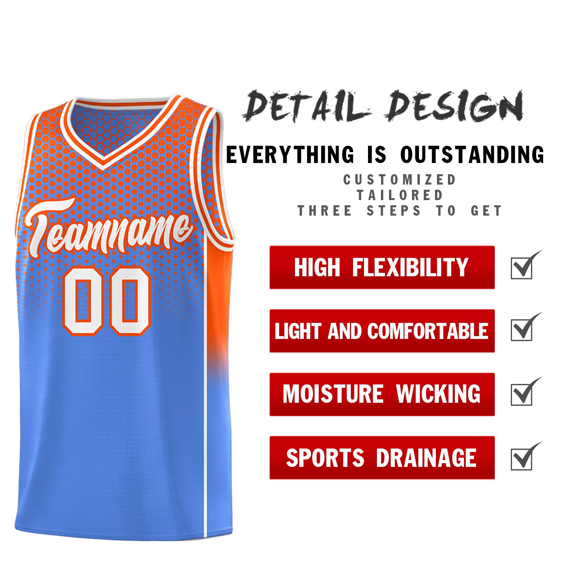 Custom Light Blue Orange Reversible Side Gradient Sports Uniform Dot Pattern Basketball Jersey Kits