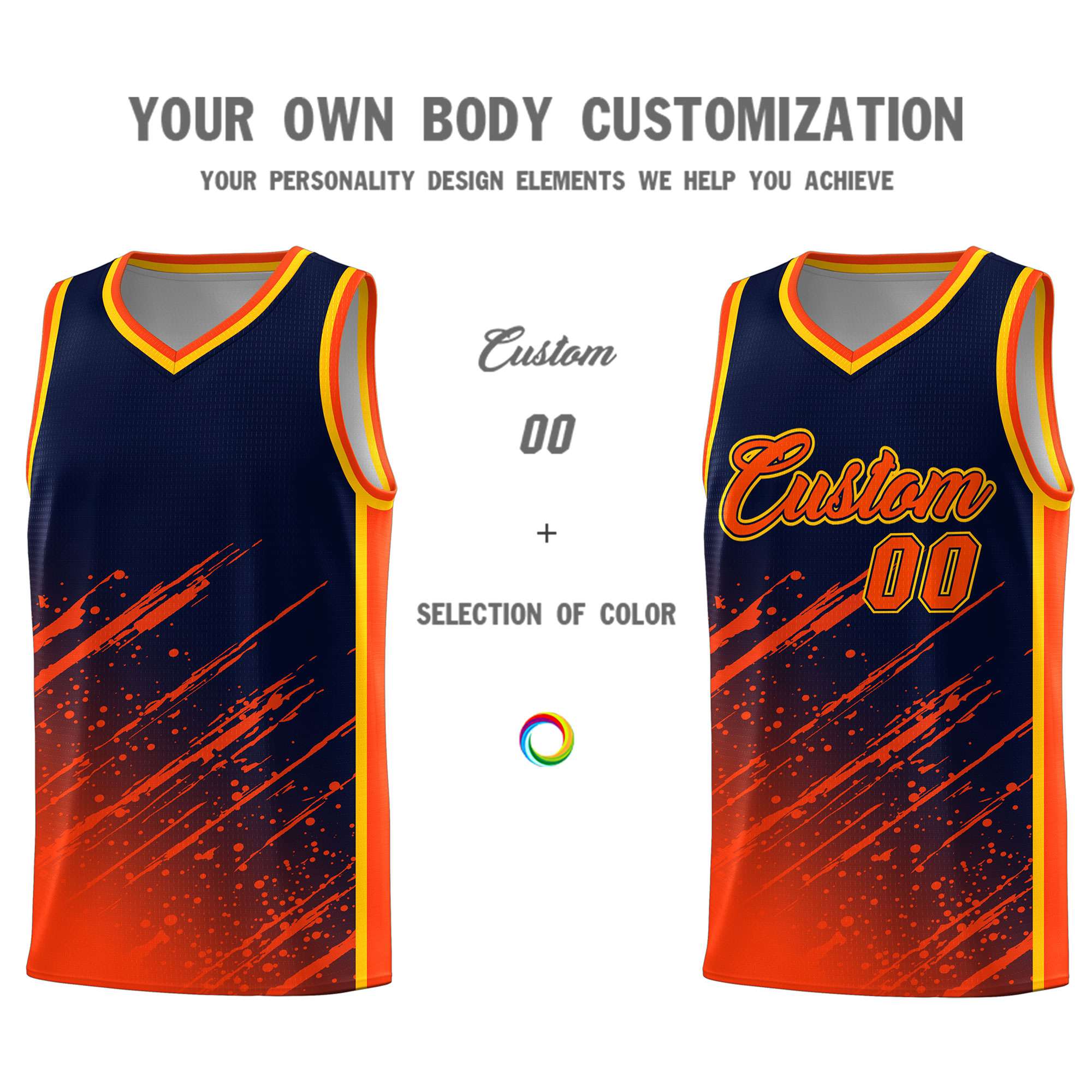 Custom Navy Basketball Kits With Orange Paint Graffiti