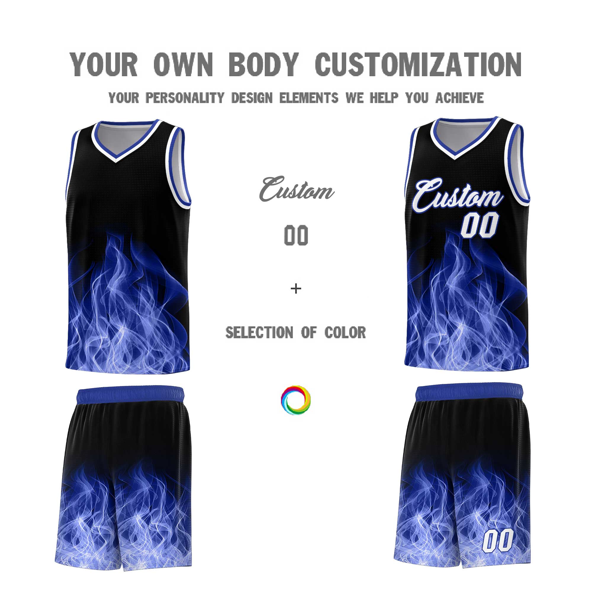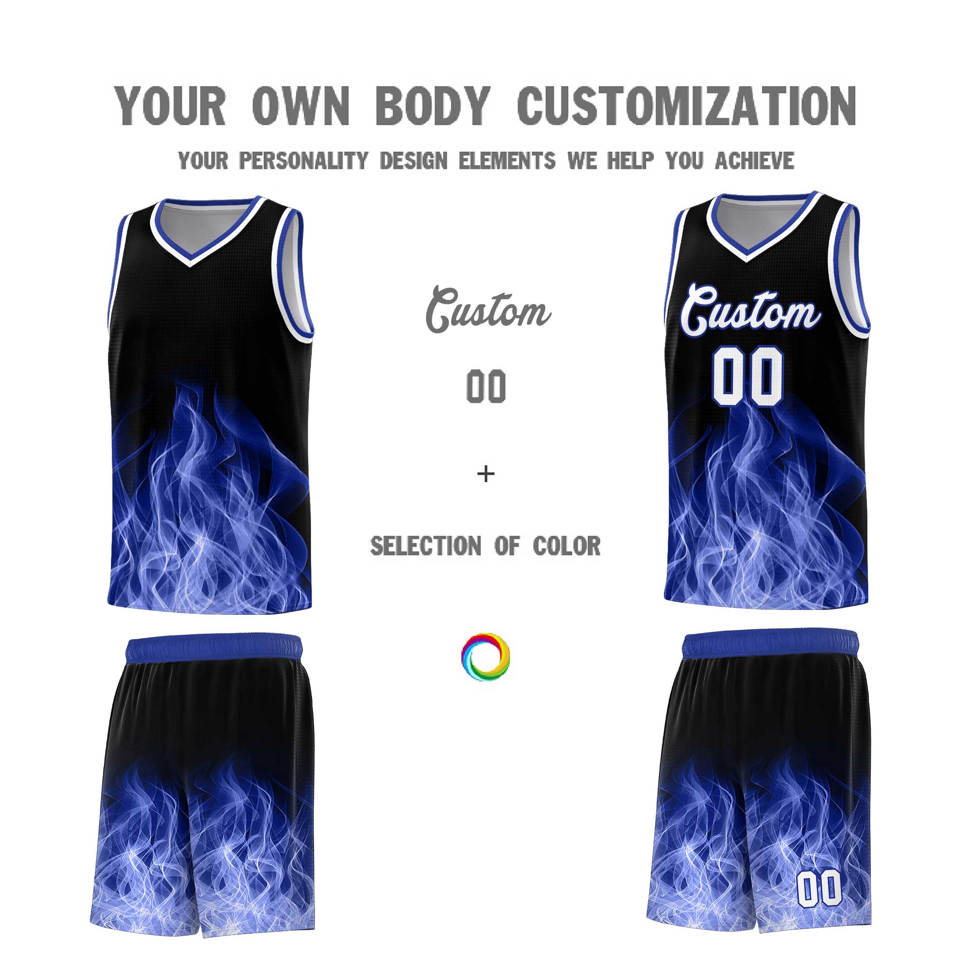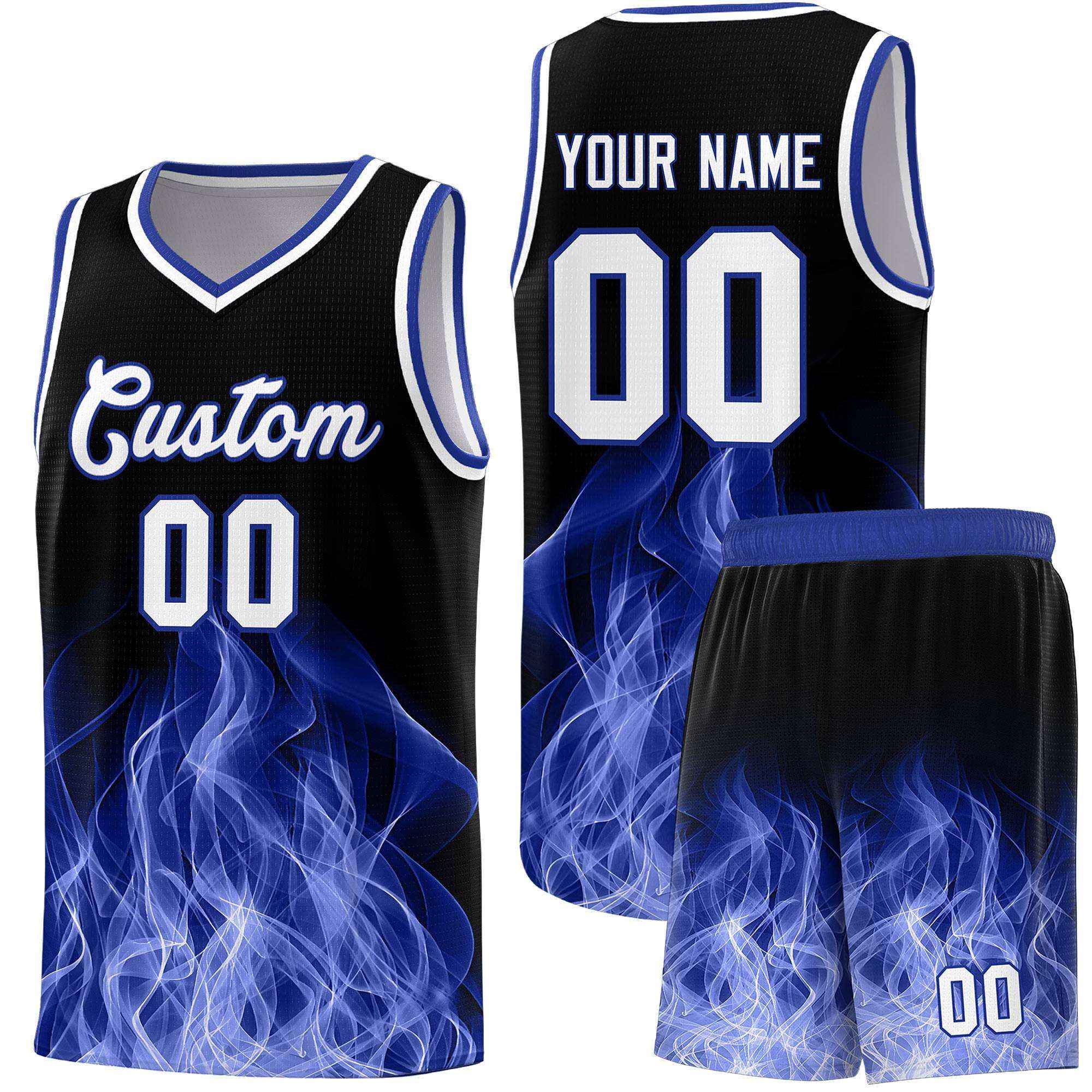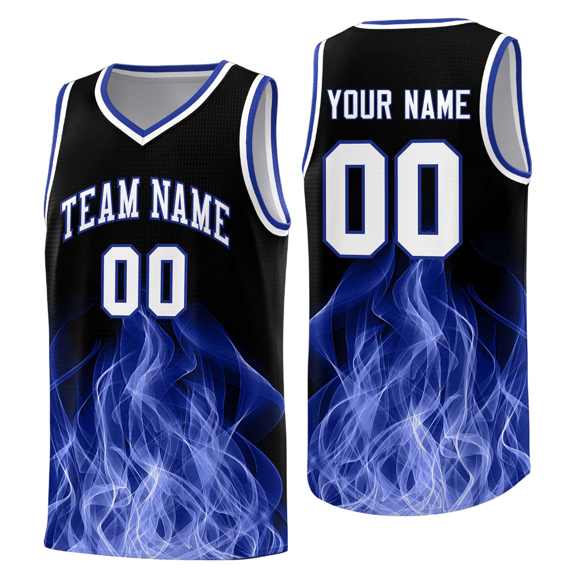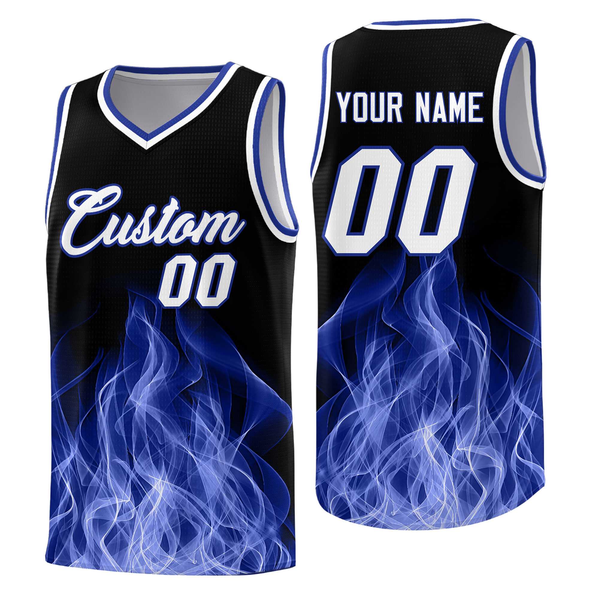 Custom Black Royal Flame Graffiti Pattern Lightweight Personalized Uniform Basketball Jersey