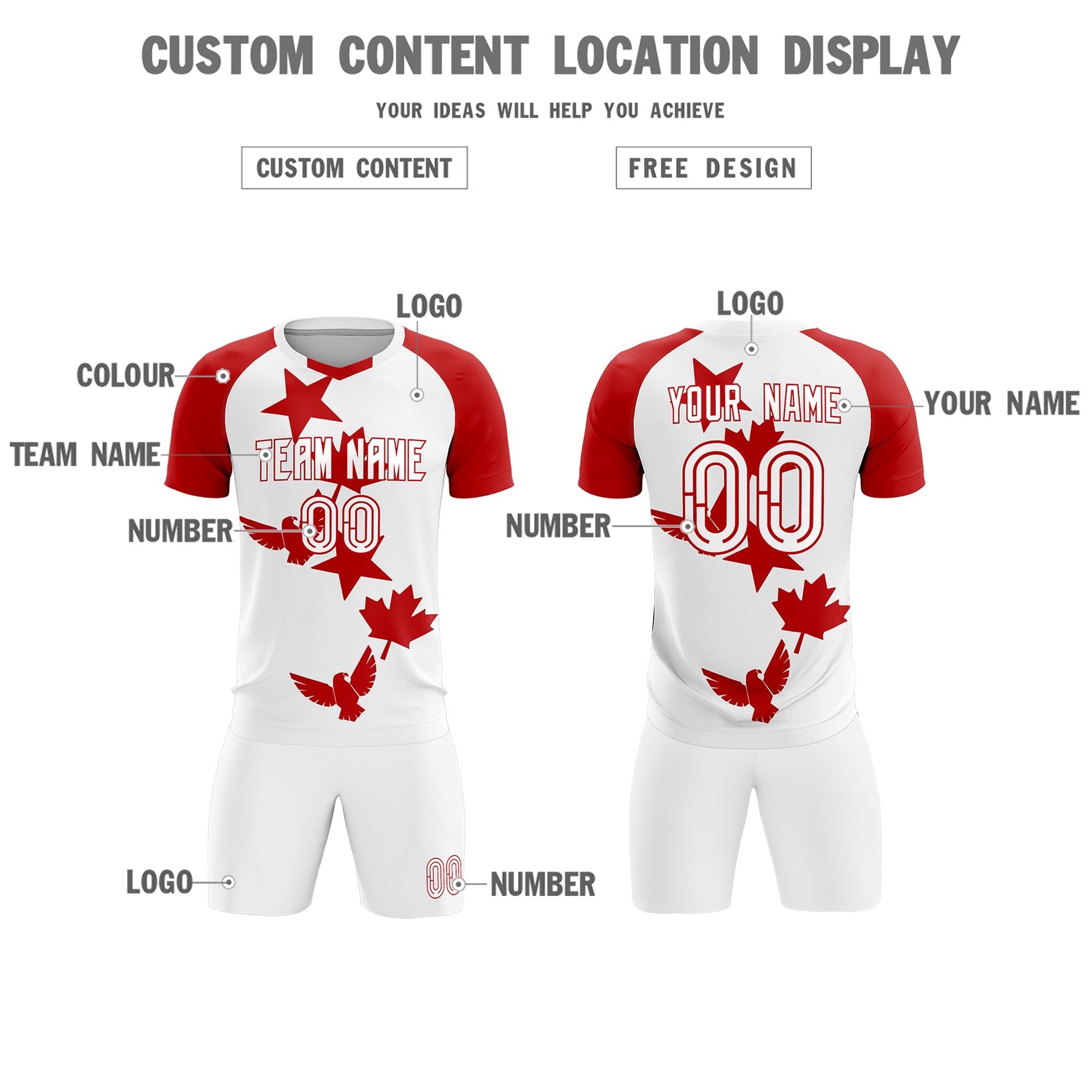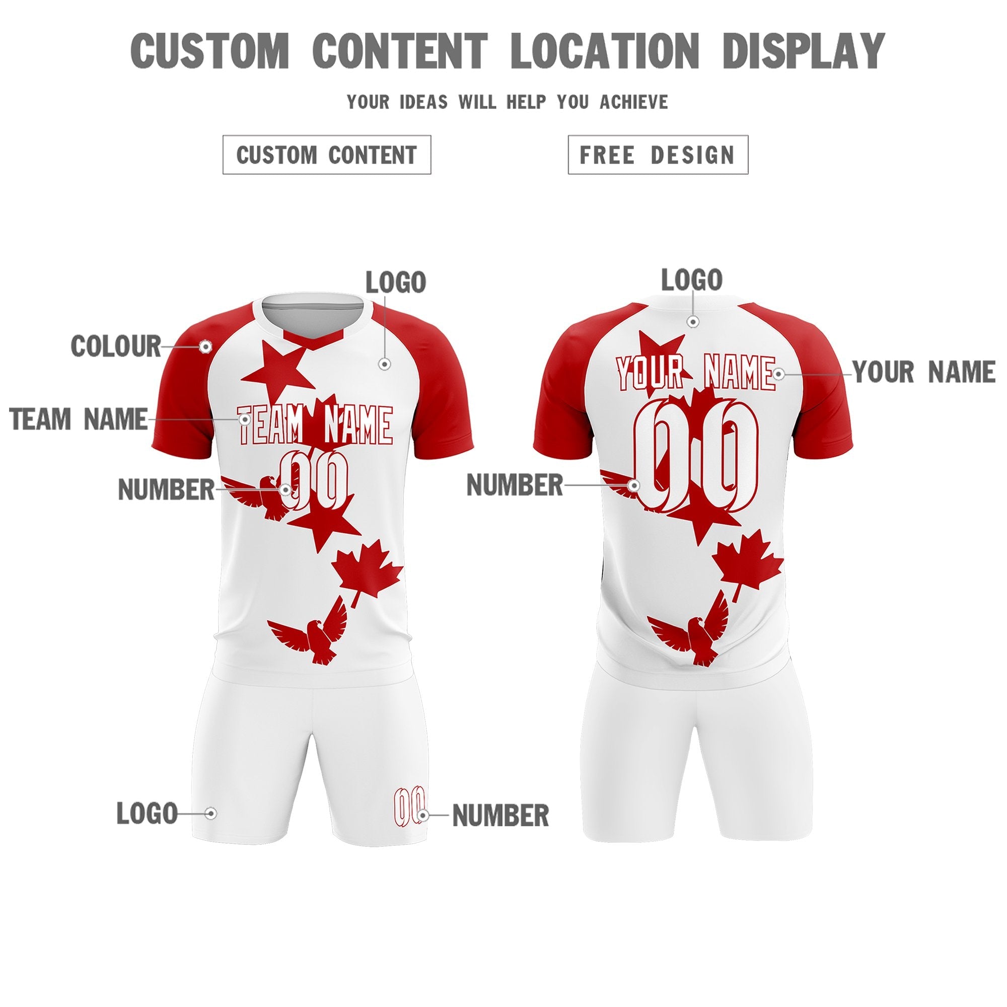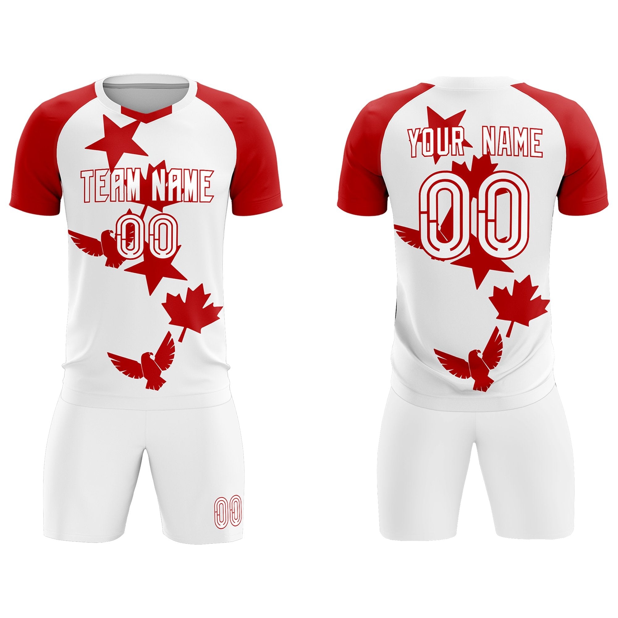 Custom Red White World Cup Inspired Lightweight&Drapable Training Uniform Raglan Sleeve Football Kits Jersey