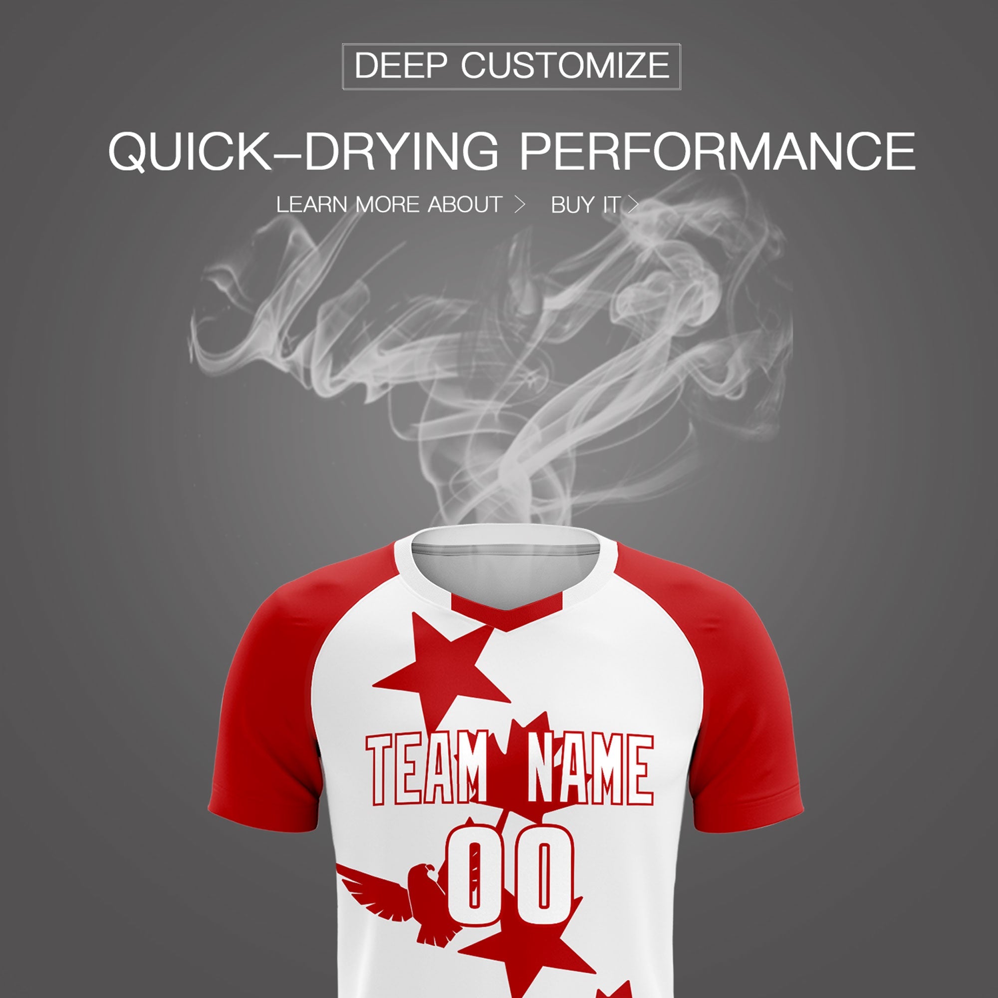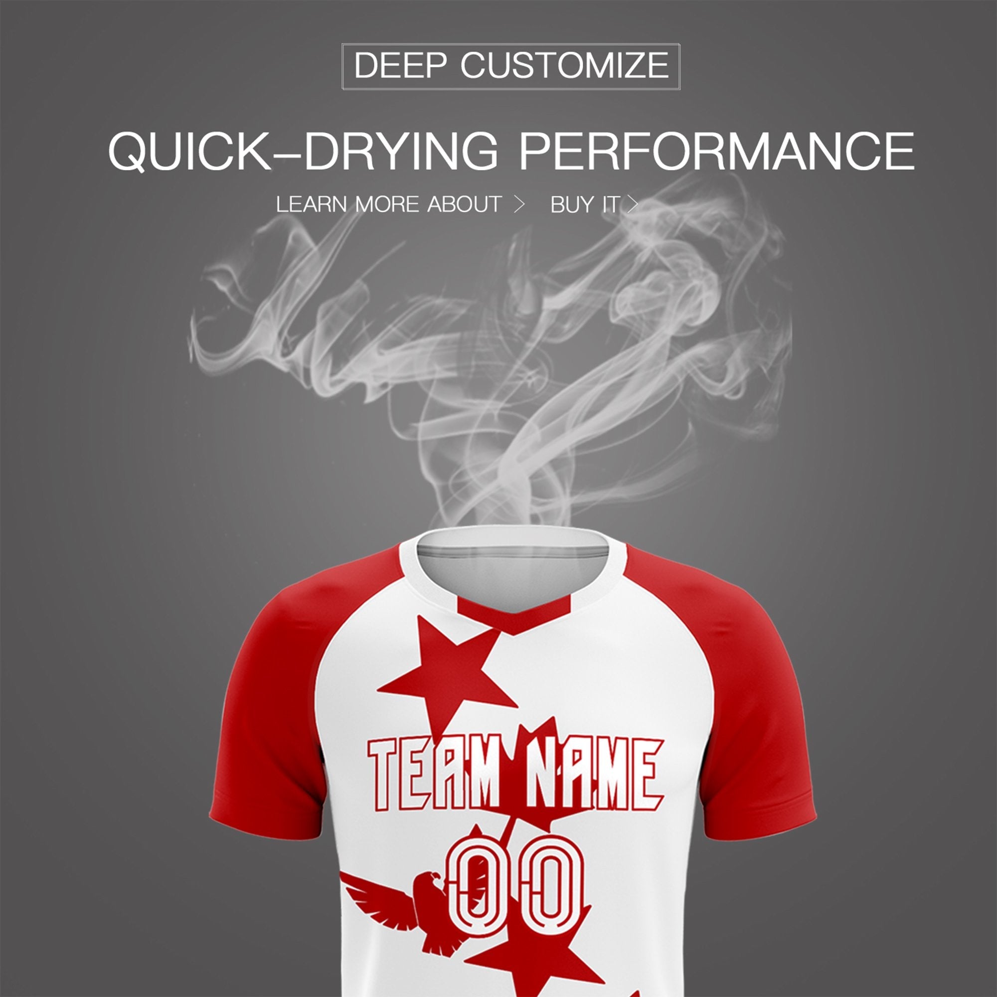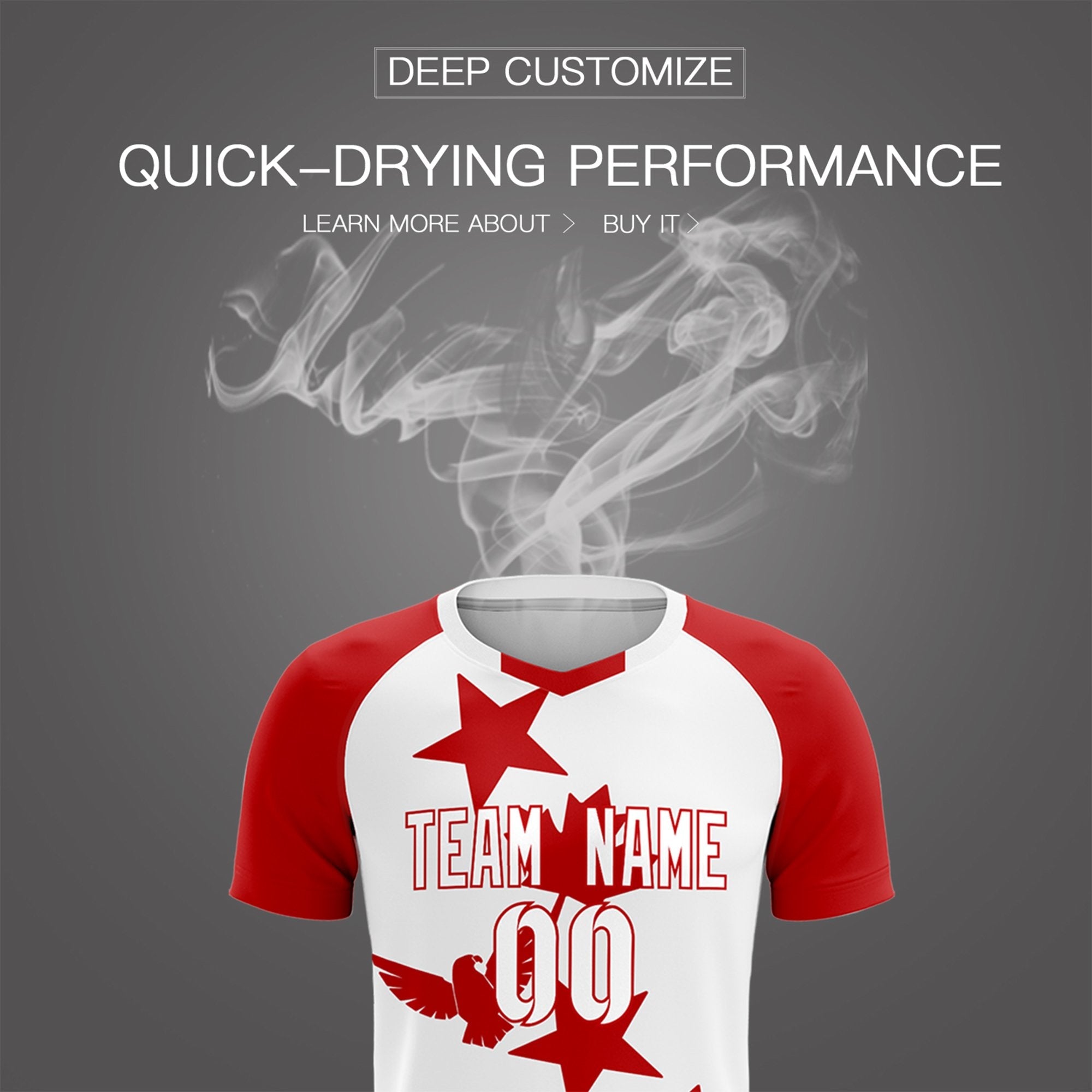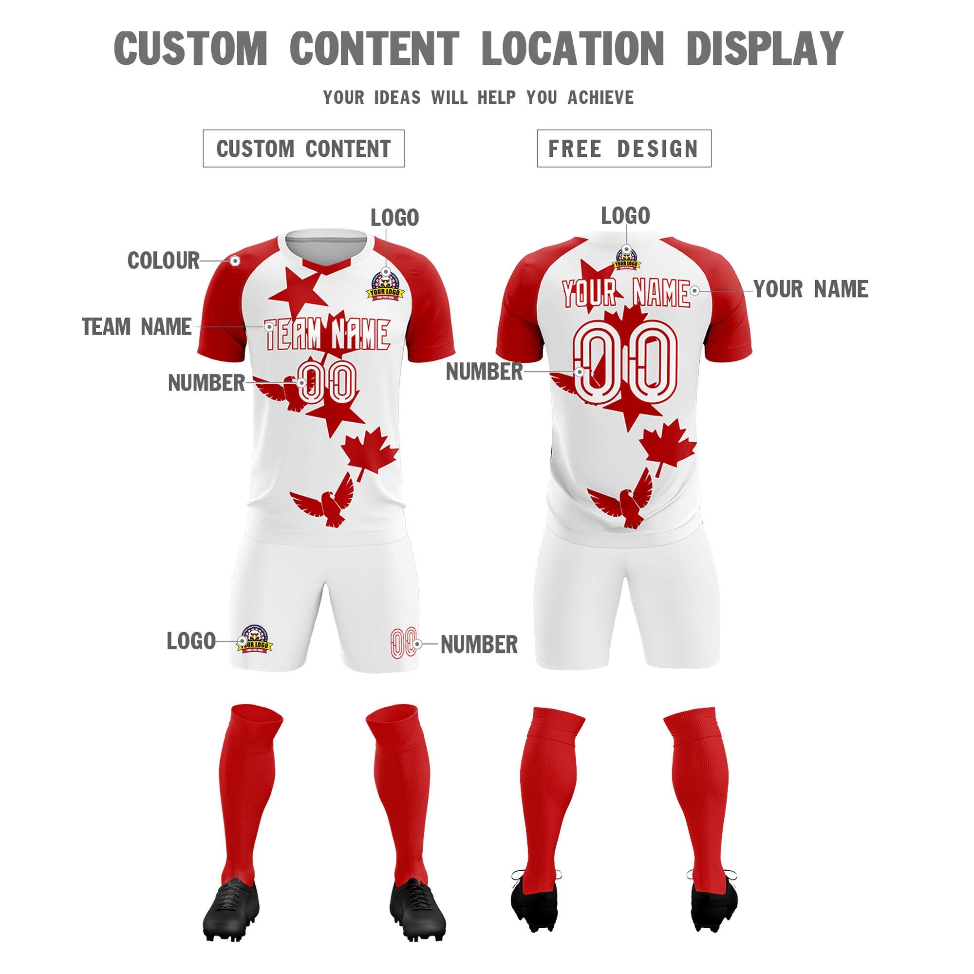 Custom Red White World Cup Inspired Lightweight&Drapable Training Uniform Raglan Sleeve Football Kits Jersey