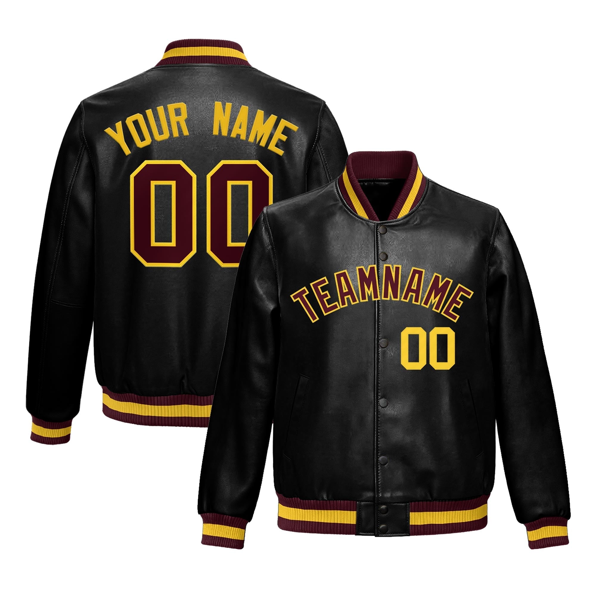 Premium faux leather varsity jacket with an athletic cut and exquisite stitching. Wrinkle-resistant, durable, and featuring a classic front pocket for a sharp, lasting look.