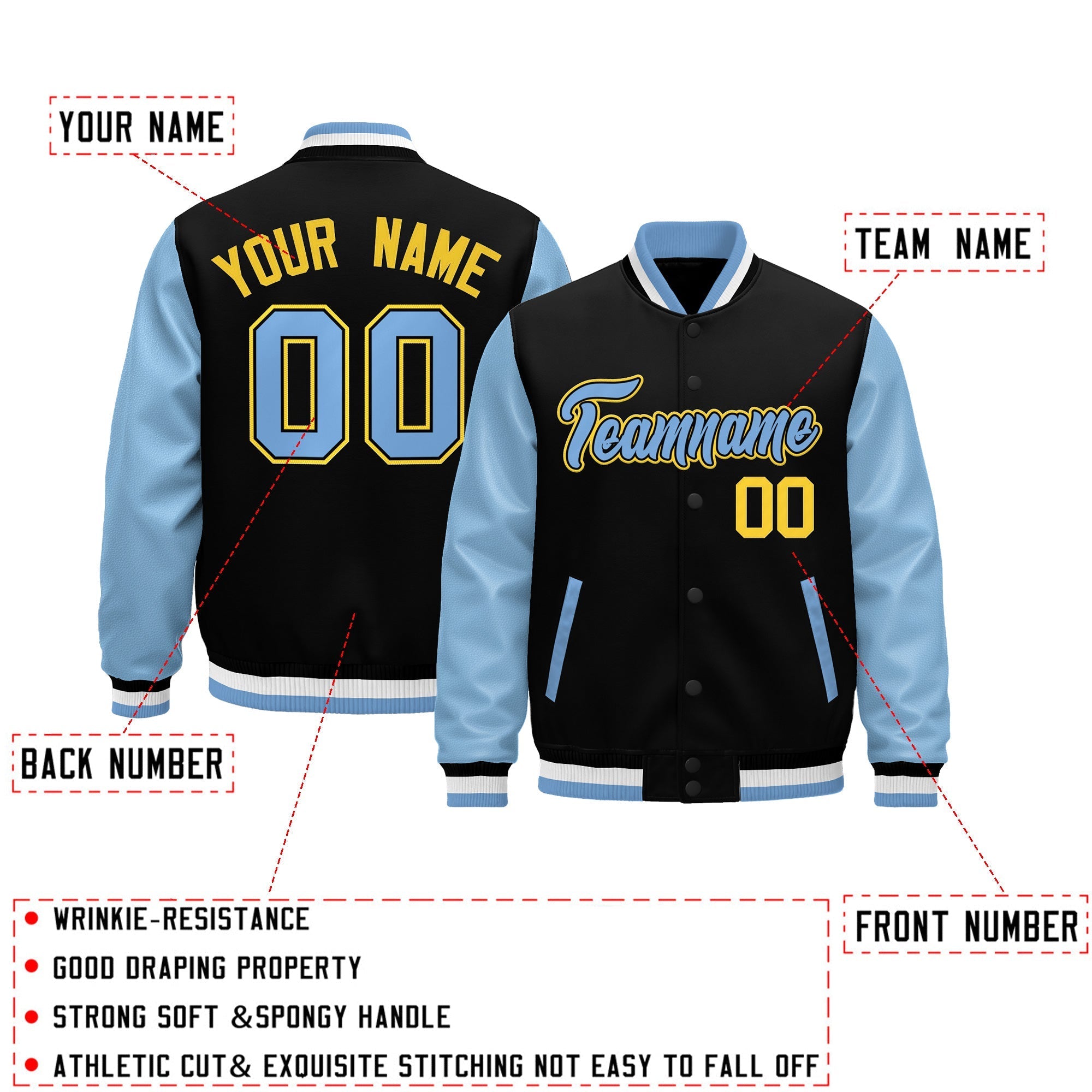 2.Two Sleeve Materia Available:Poly-Wool Sleeves: A lightweight, flexible option suitable for mild temperatures.Faux Leather Sleeves: A classic, structured option suitable for moderate temperatures