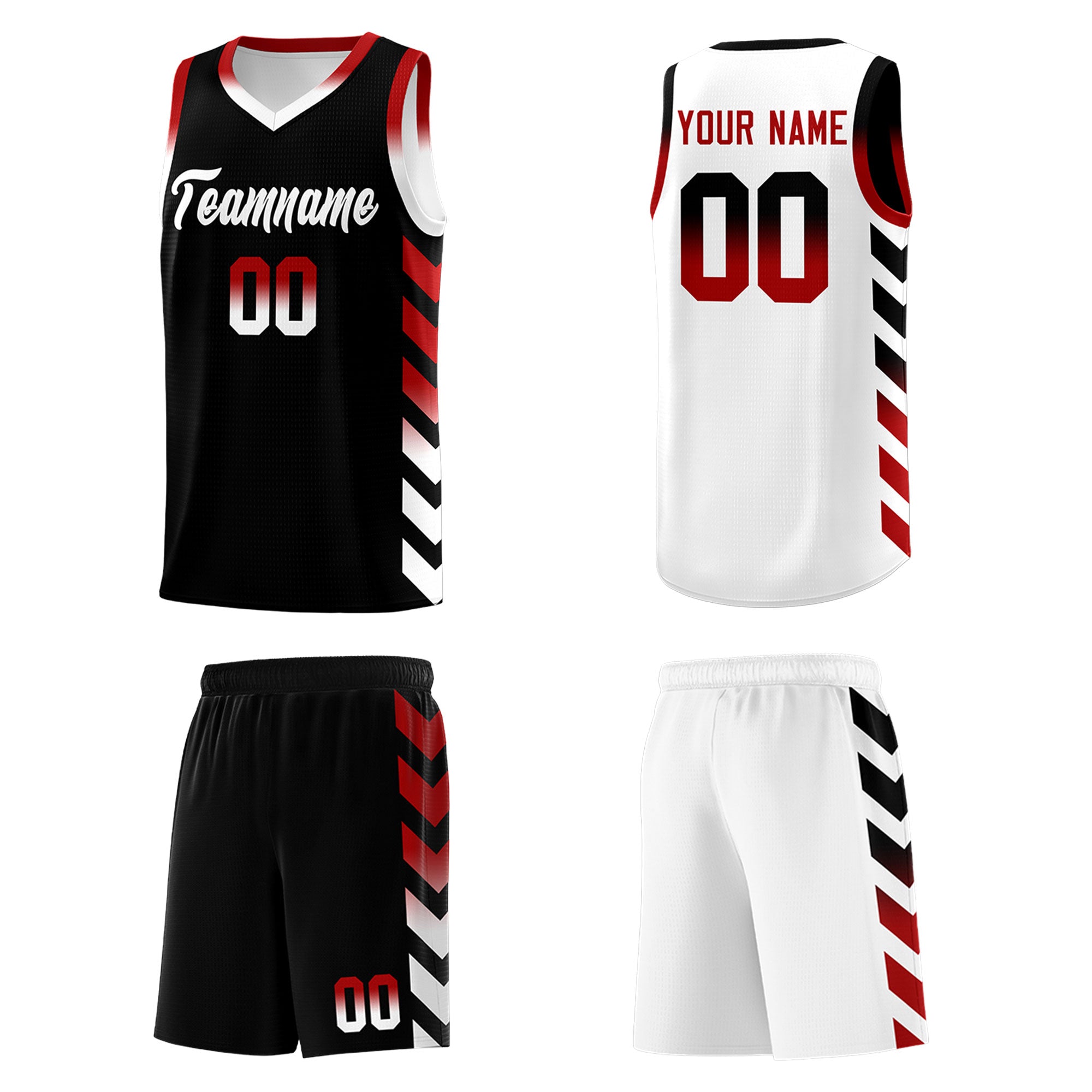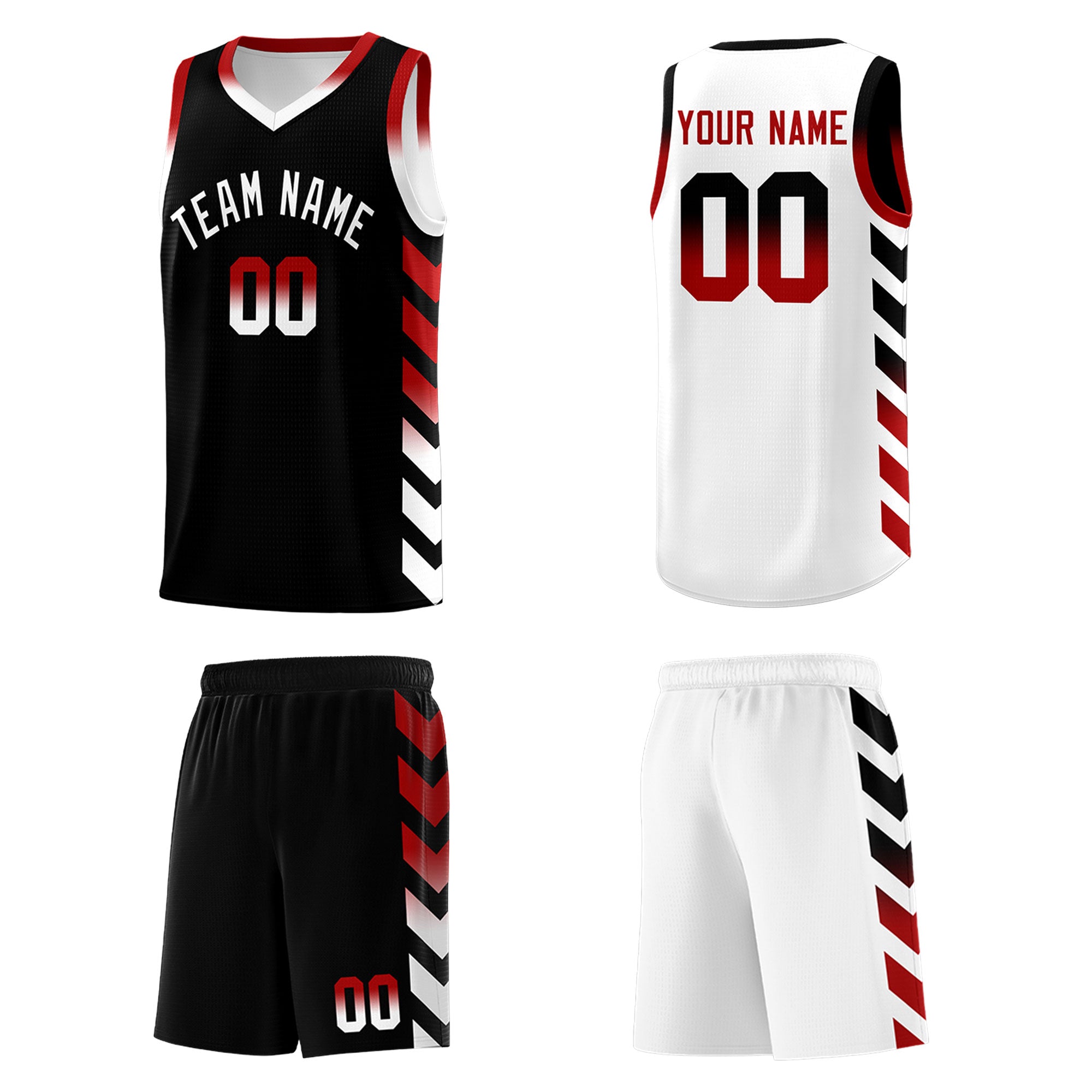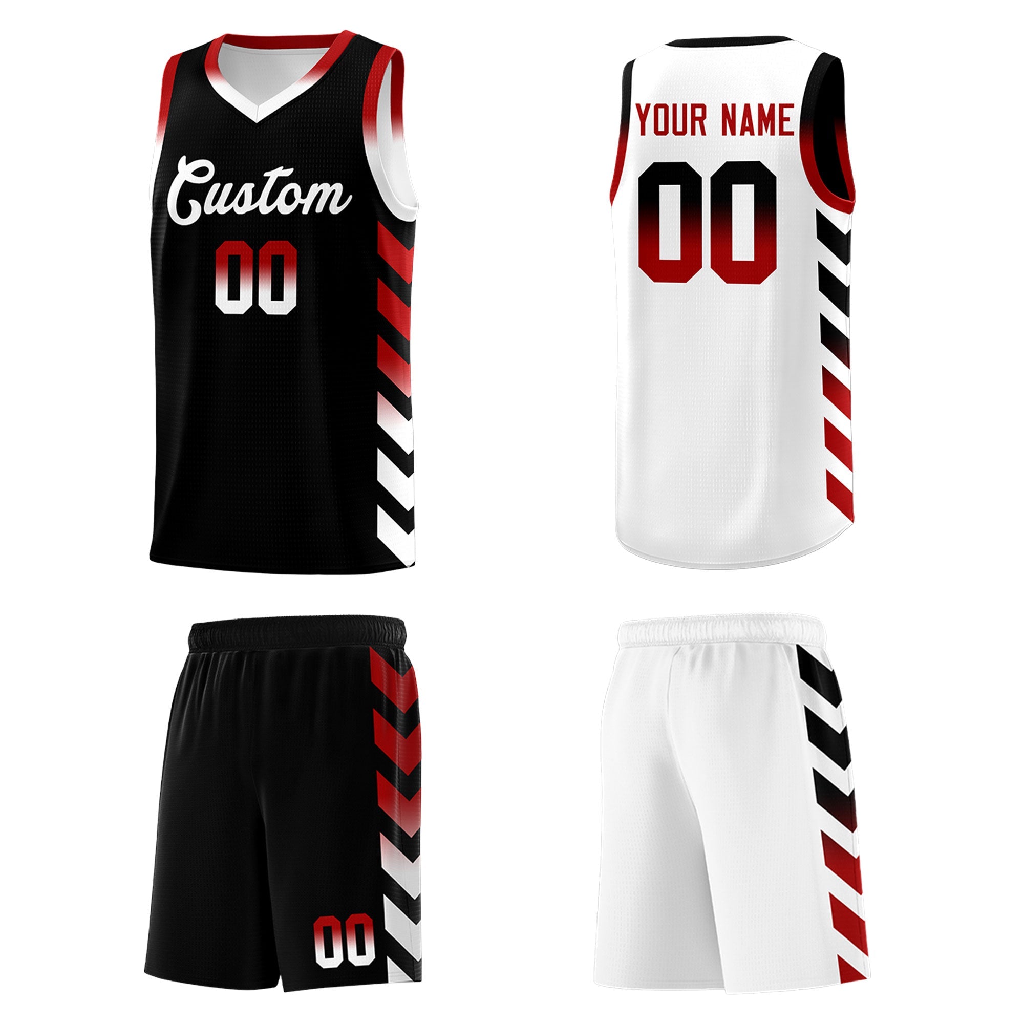 Custom White Black Reversible Basketball Jersey Kits - Side Arrow Black Red Gradient