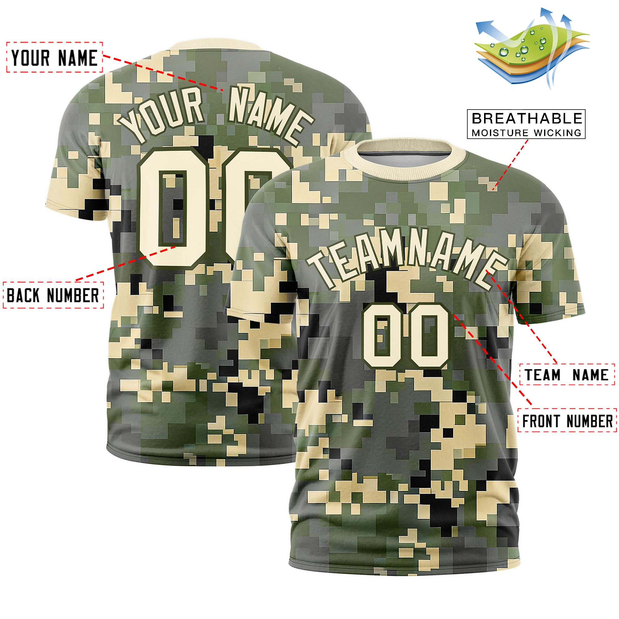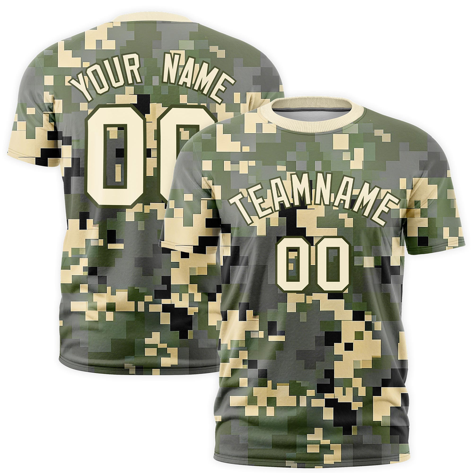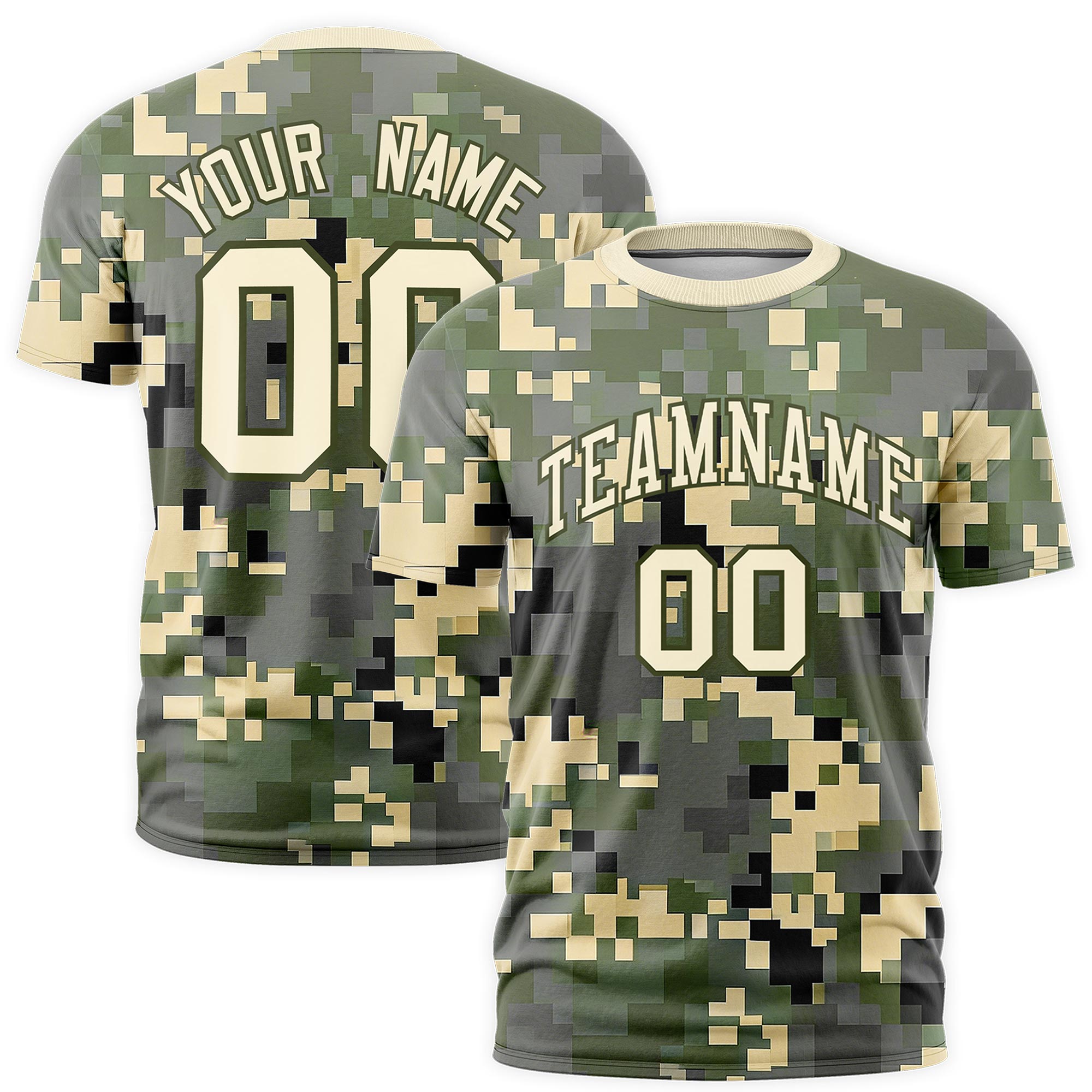 Custom Camo Light Khaki Olive Breathable Crew Neck T-shirts