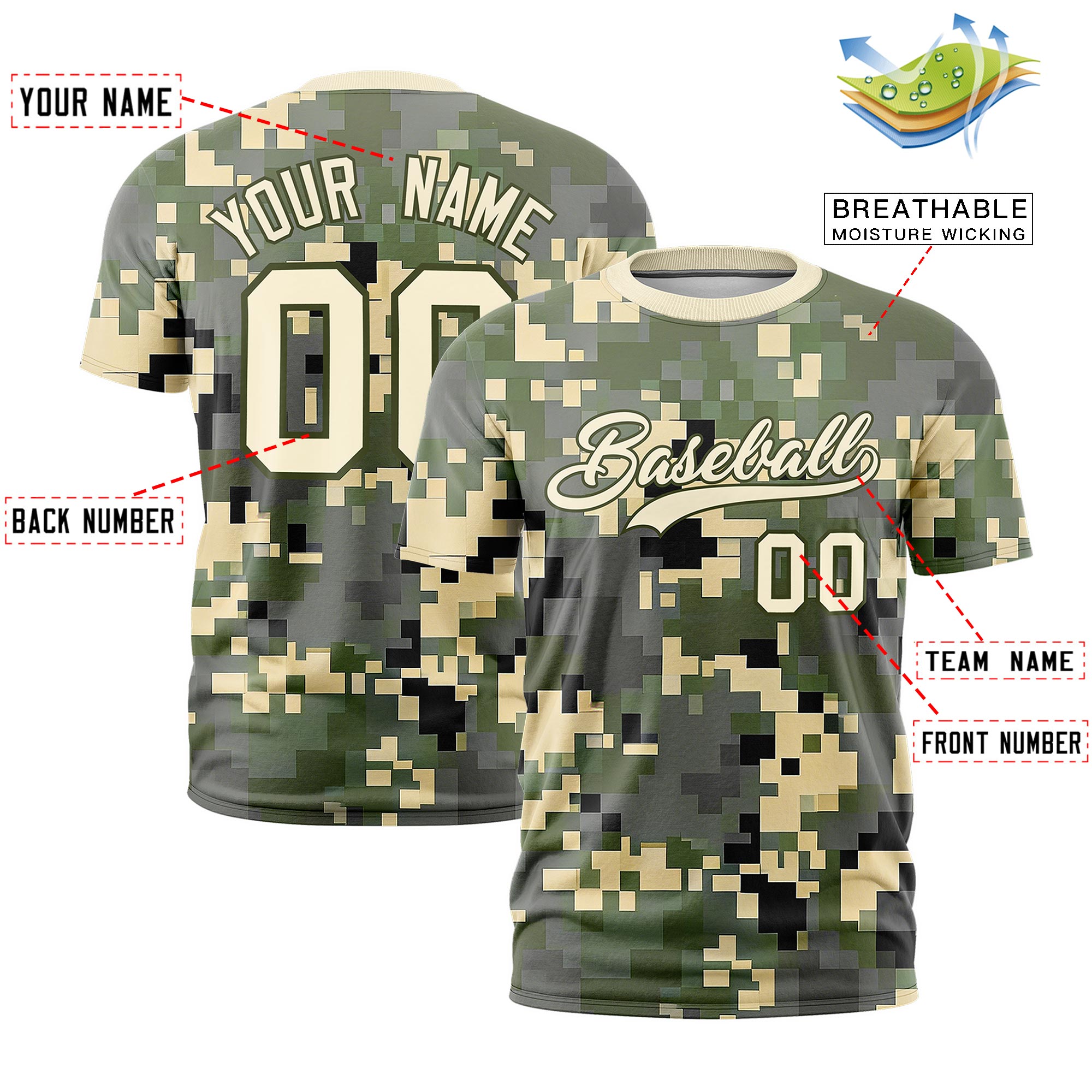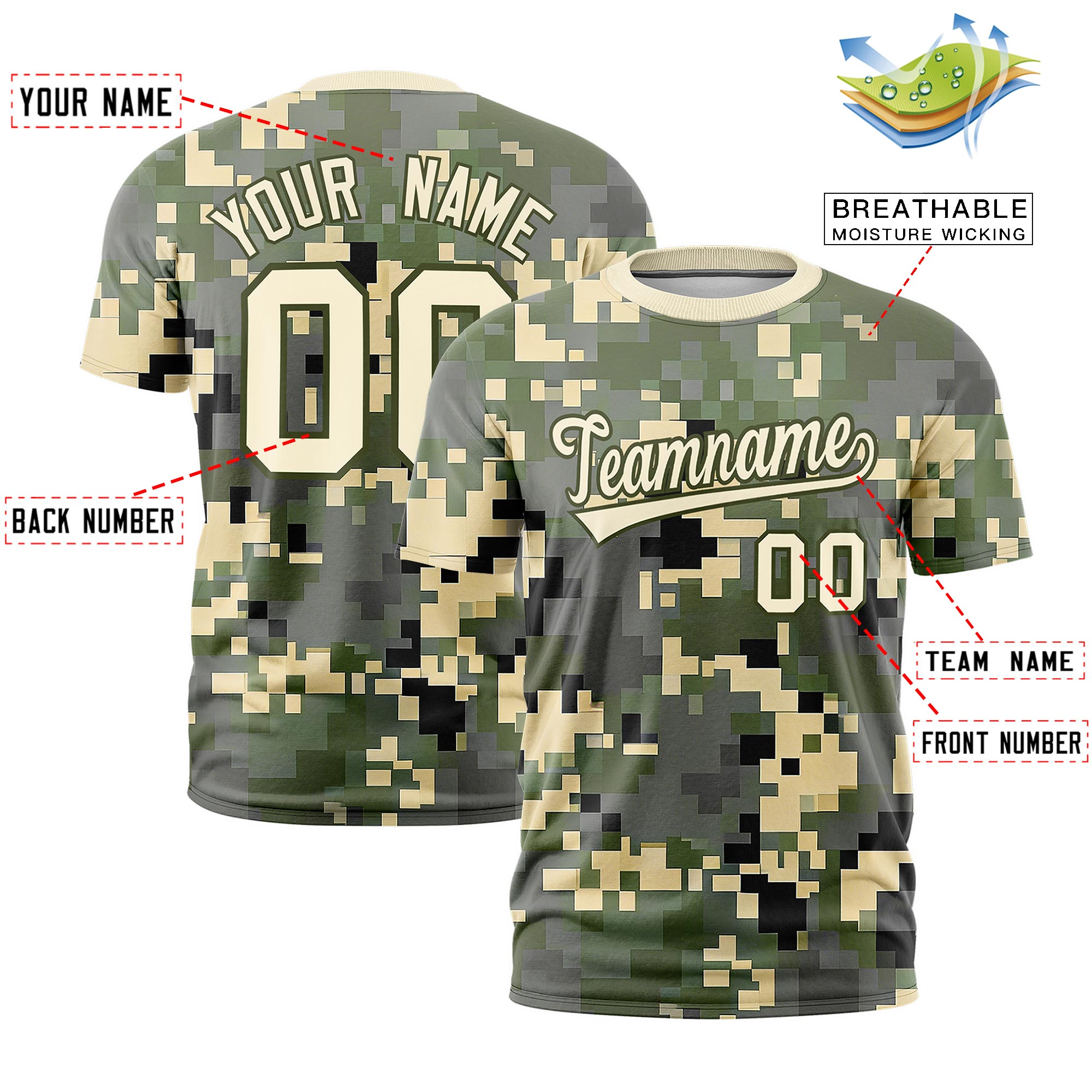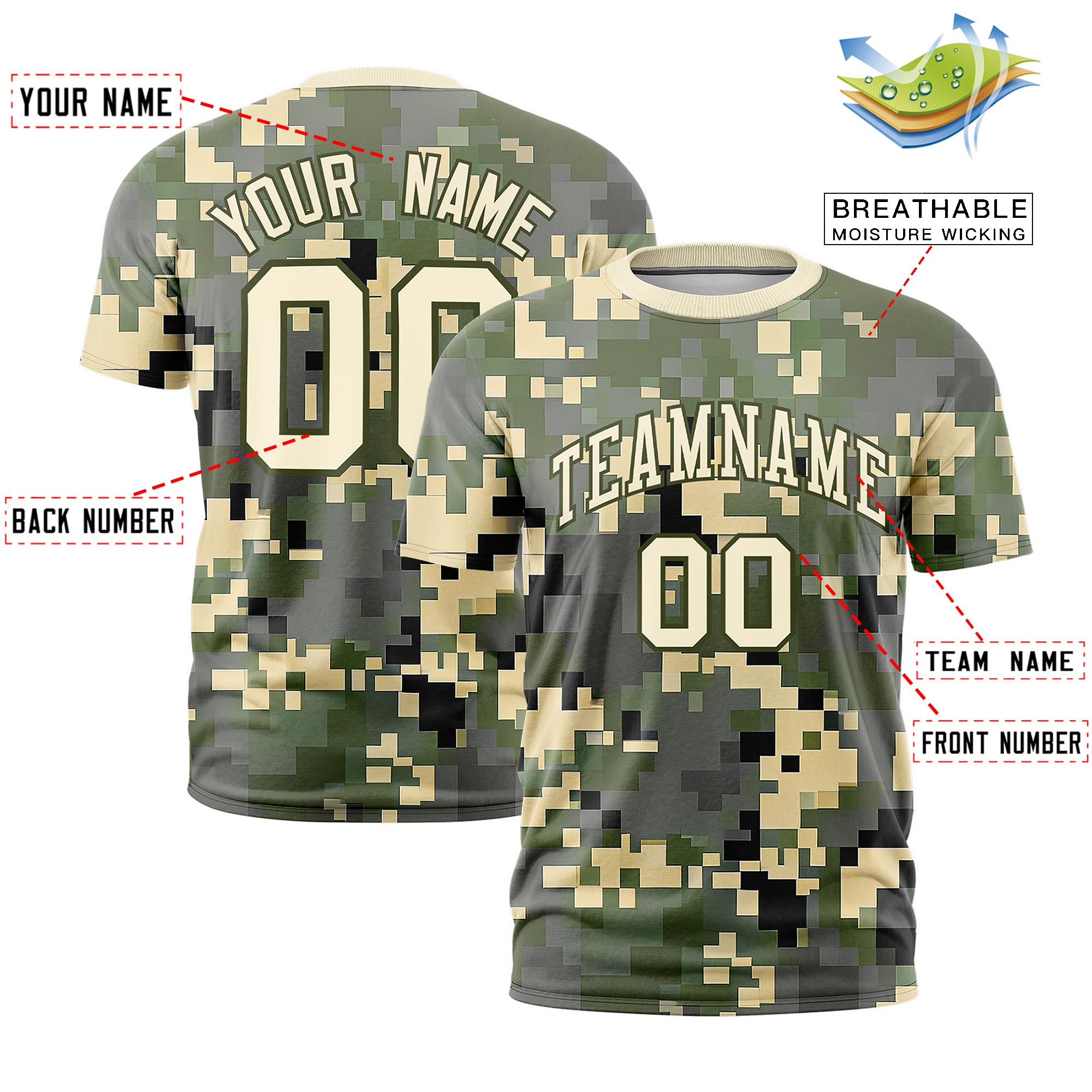 Custom Camo Light Khaki Olive Breathable Crew Neck T-shirts